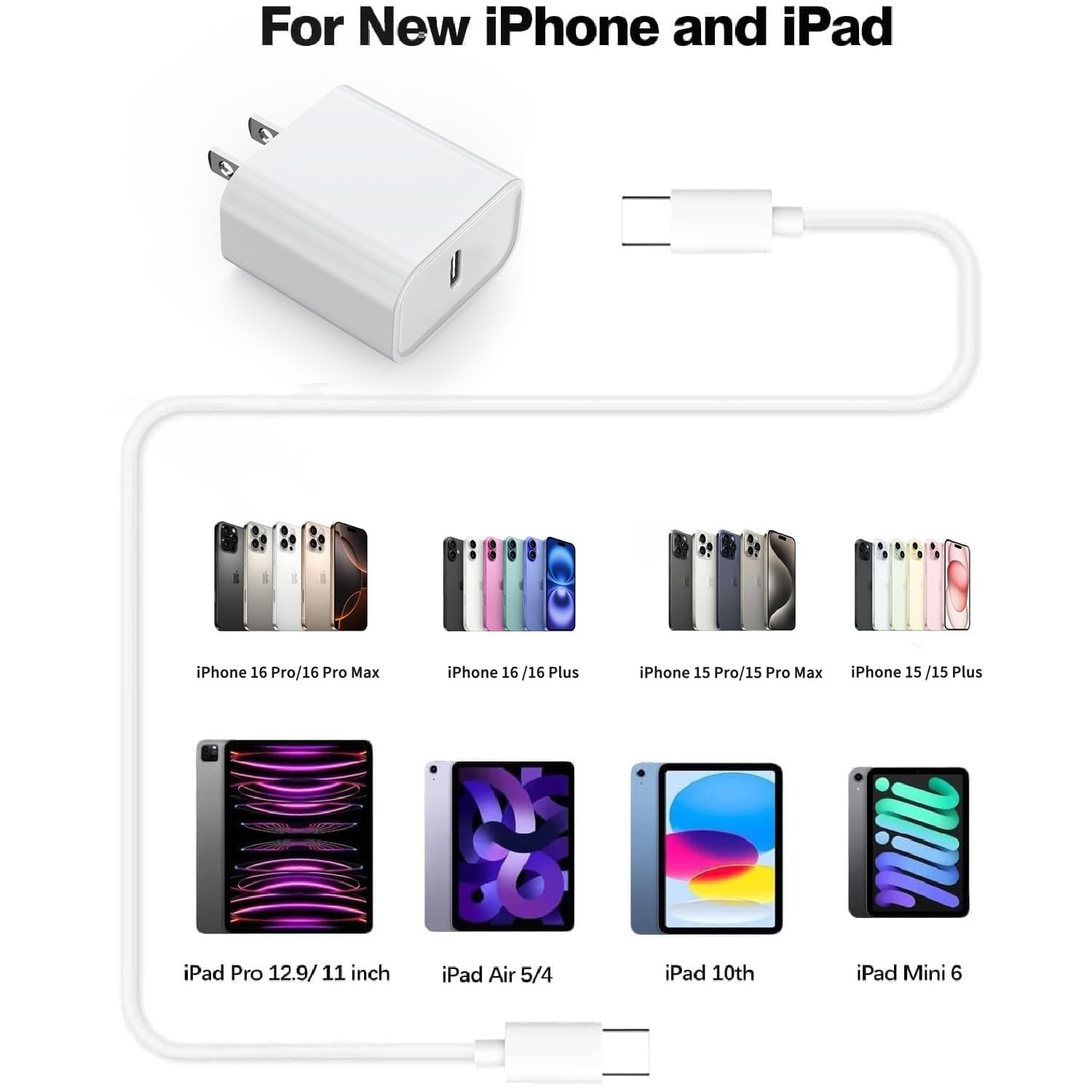 iPhone 16 15 Charger, 20W USB C iPad Charger Block iPad Adapter iPhone 16 15 Fast USB C Charging 3.3FT Type C Cable iPad Cord for iPhone 16/16 Pro Max/15/15 Plus | iPad Pro 12.9/11/iPad Air 4/5/Mini 6