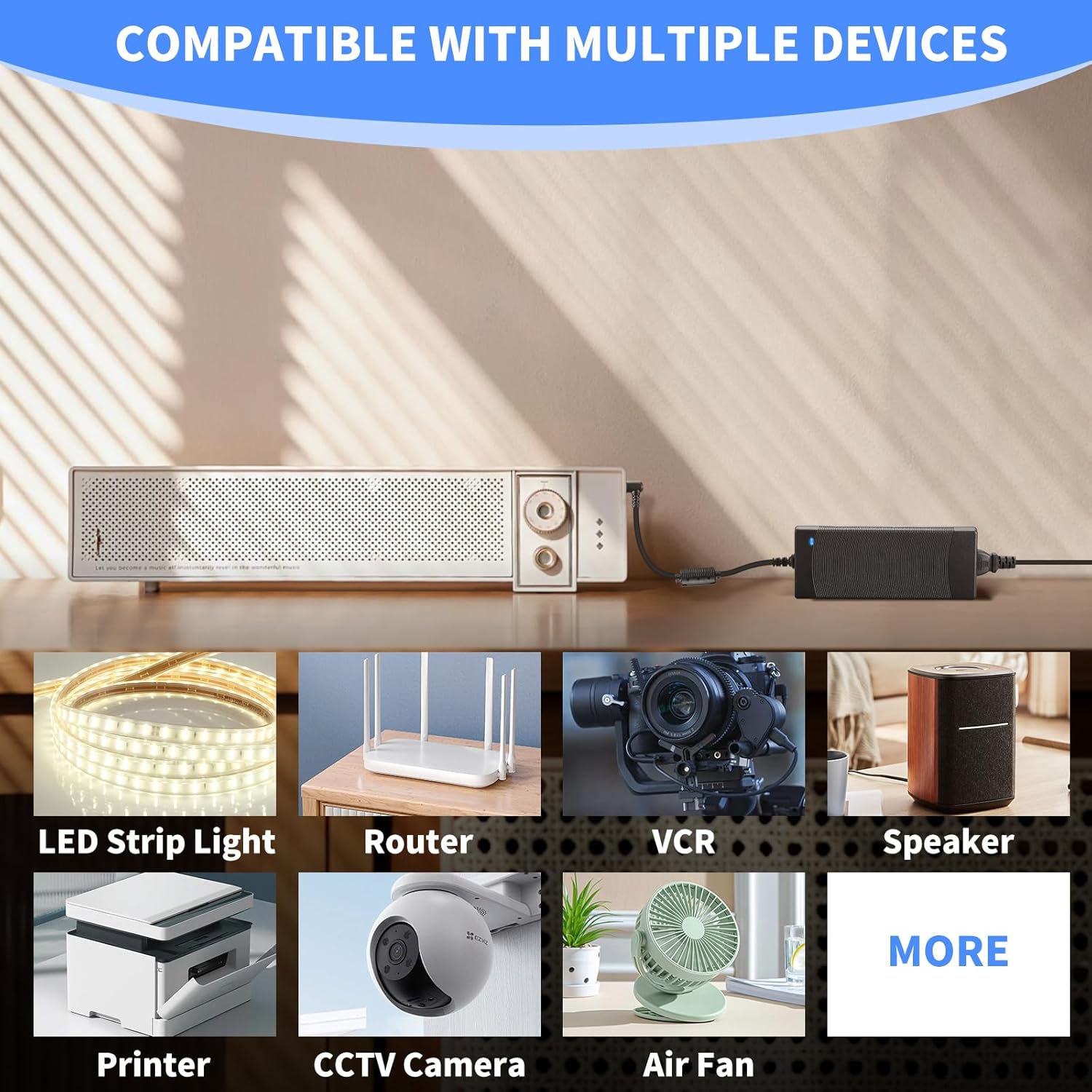 4. Plug-and-Play Convenience: Our 12V adapter comes with a standard 5.5mm x 2.1mm DC plug, ensuring compatibility with a wide range of devices.Compatible with 12V devices with current less than 10A, such as 10A,9A, 8A, 7A, 6A, 5A,4A, 3A, 2A, 1A, 500mA……and more.