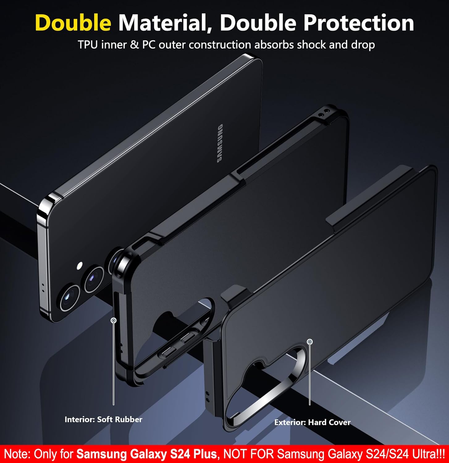 【Full Body Protection】 This two-in-one combination of military grade tough protection S24 Plus 5G Case, Hard PC + Solid inner polycarbonate shell soft cushioning rubber outer S24 Plus Protection cover, Four-corner grooved airbags,unique shock absorption design,more comprehensive protection of the fragile parts for the smartphone.Raised lips keeps camera lifted to prevent your lens from shock,collision and scratch.