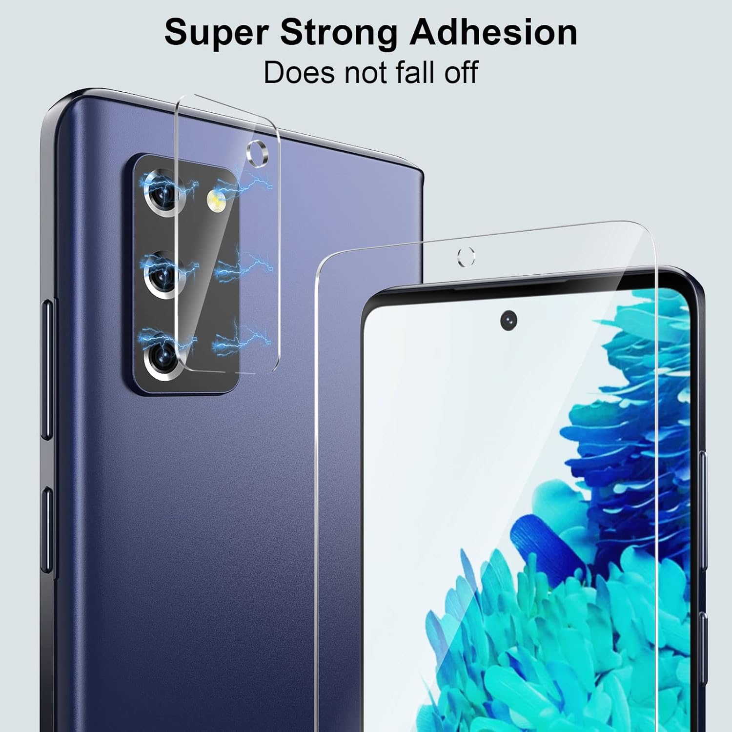 【4 Pack】 2 Pack Tempered Glass Screen Protector for Samsung Galaxy S20 FE(6.5”)+2 Pack Camera Lens Protector Tempered Glass for Galaxy S20 FE, Ultrasonic Fingerprint Compatible Bubble Free