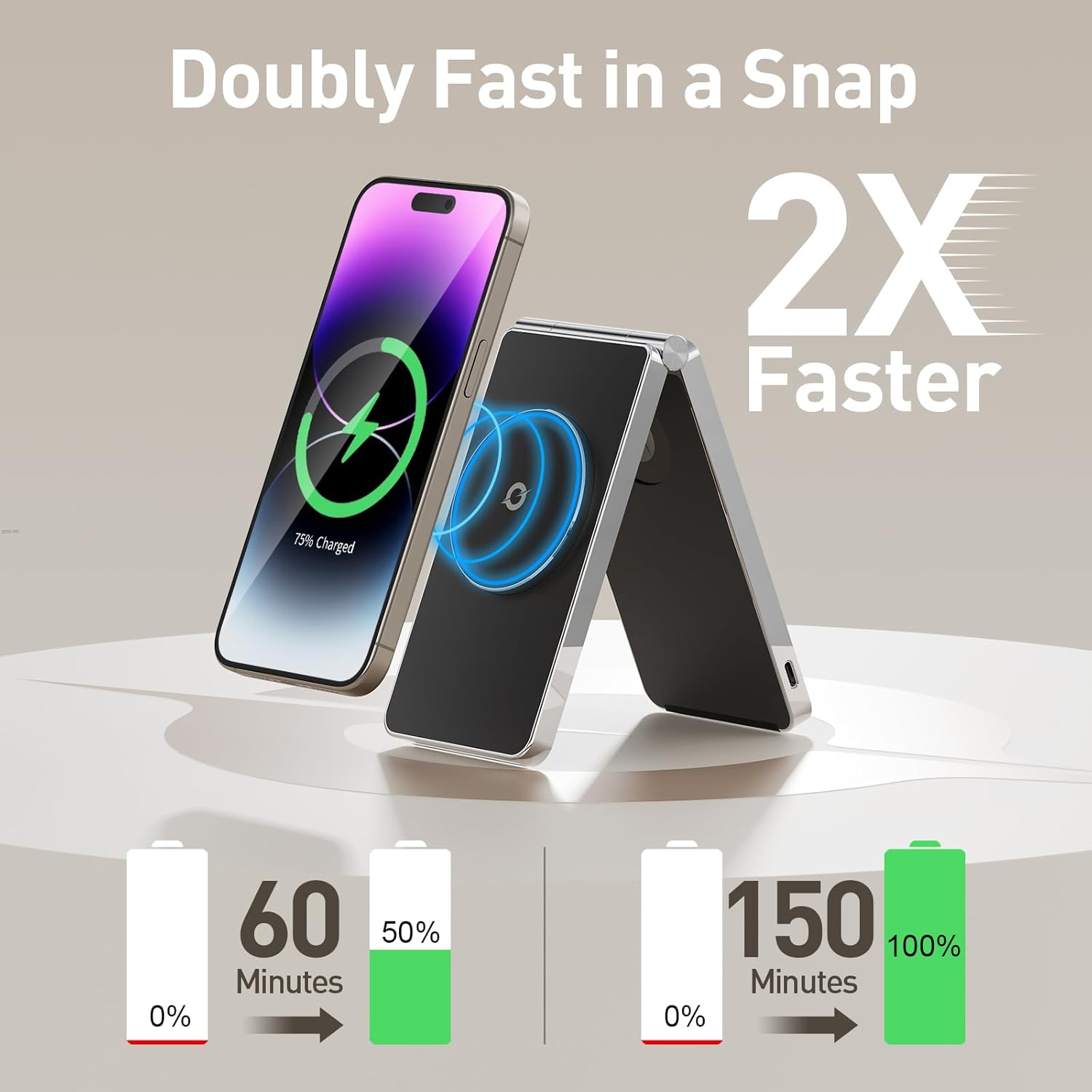 【Portable Travel Design】 Designed for eco-friendly travelers, our magnetic safety charging station is foldable, making it the perfect travel companion. Simply fold it into the wireless charging board and easily fit it into a bag or suitcase. Say goodbye to tangled power cords and bulky chargers when going out. Whether you’re traveling or on a business trip, this compact charger keeps all your devices powered on without taking up too much space