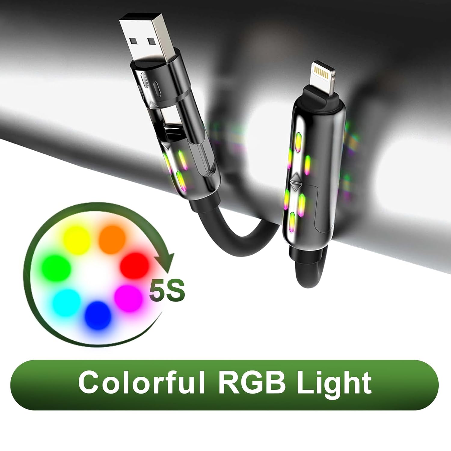 240W 4-in-1 Multi Fast USB Charging Cable with Breathing Light, USB A Type C Lightning Cable for iPhone 16 15 14 13 12 11 Pro Max iPad Samsung Galaxy MacBook iPad Tablets & More (6FT, Black)