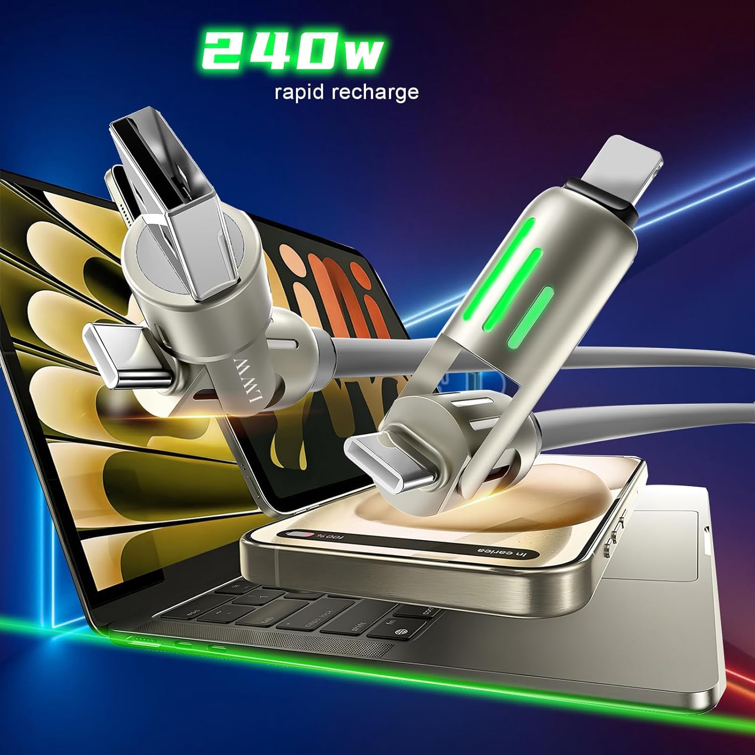 240W USB C Cable 4 in 1 USB C to USB C Fast Charging Cable with Breathing Light Multi Charging Cable for iPhone15/16/Pro/Plus/Pro Max, MacBook, iPad, Samsung 5FT