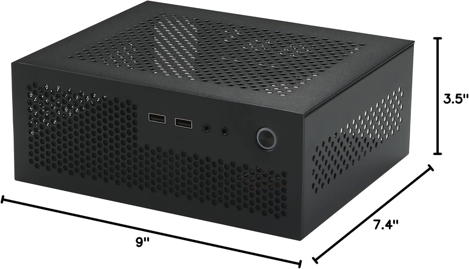 Nice and simple little case with great air flow. I put a ASRock N100DC-ITX board in it which has a embedded processor that is passively cooled. No fans, no sound at all coming from the machine. This computer is a fun project to run Casa OS on Debian. This is my new home for Home Assistant where I can control lighting, security cameras etc. One thing I like about the case is it is made to fit a power supply inside, but since I can run this motherboard off of a laptop power supply, I have all that room for some extra hard drives. The case is not too large, but it is easy to work inside of it, just a open box essentially, unlike a lot of ITX cases that are very tight. The construction is solid steel sheetmetal painted black. It’s not too fancy which is fine for this use case and it keeps the cost down. This whole computer including the case was around $200.