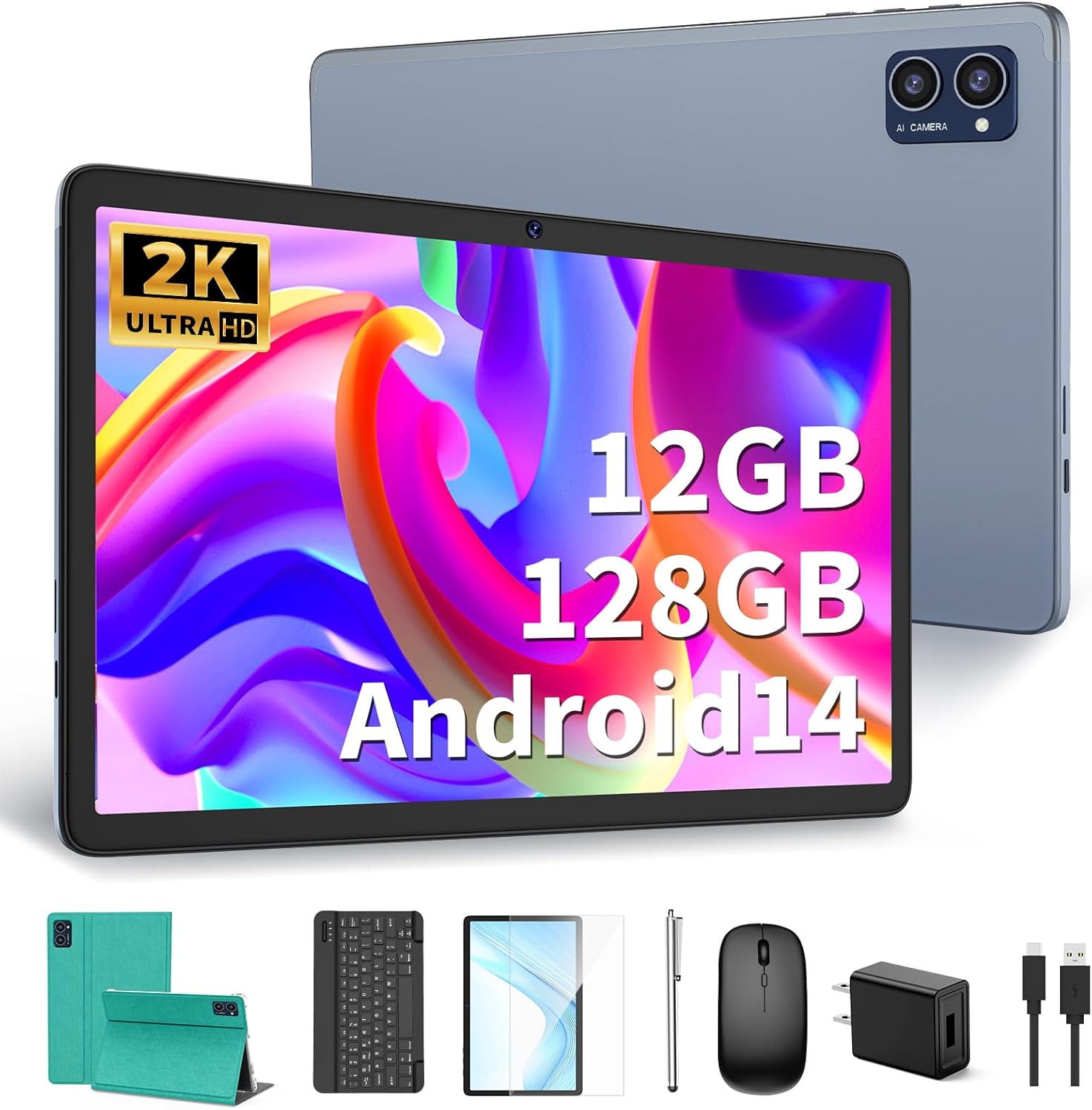 【Android 14 tablet, 128GB ROM】2024 new large-capacity Android 14 tablet 12GB RAM (4GB RAM + 8GB extend), 128GB ROM allows you to store more photos and documents. A micro SD card slot expands storage up to 1TB (FAT32 format, sold separately) so you can store all your favorite media files together, including ebooks, videos, photos. Android 14 and GMS certified, allowing you to download popular apps from the Google Play Store.