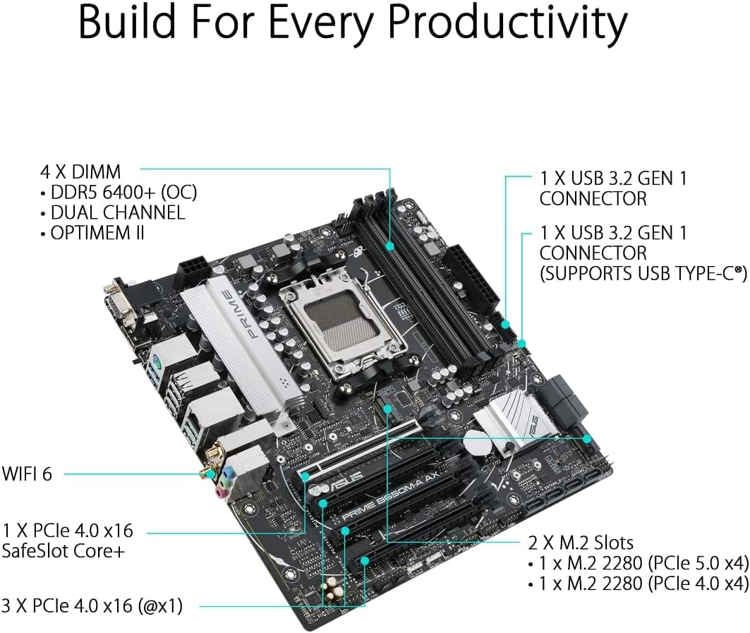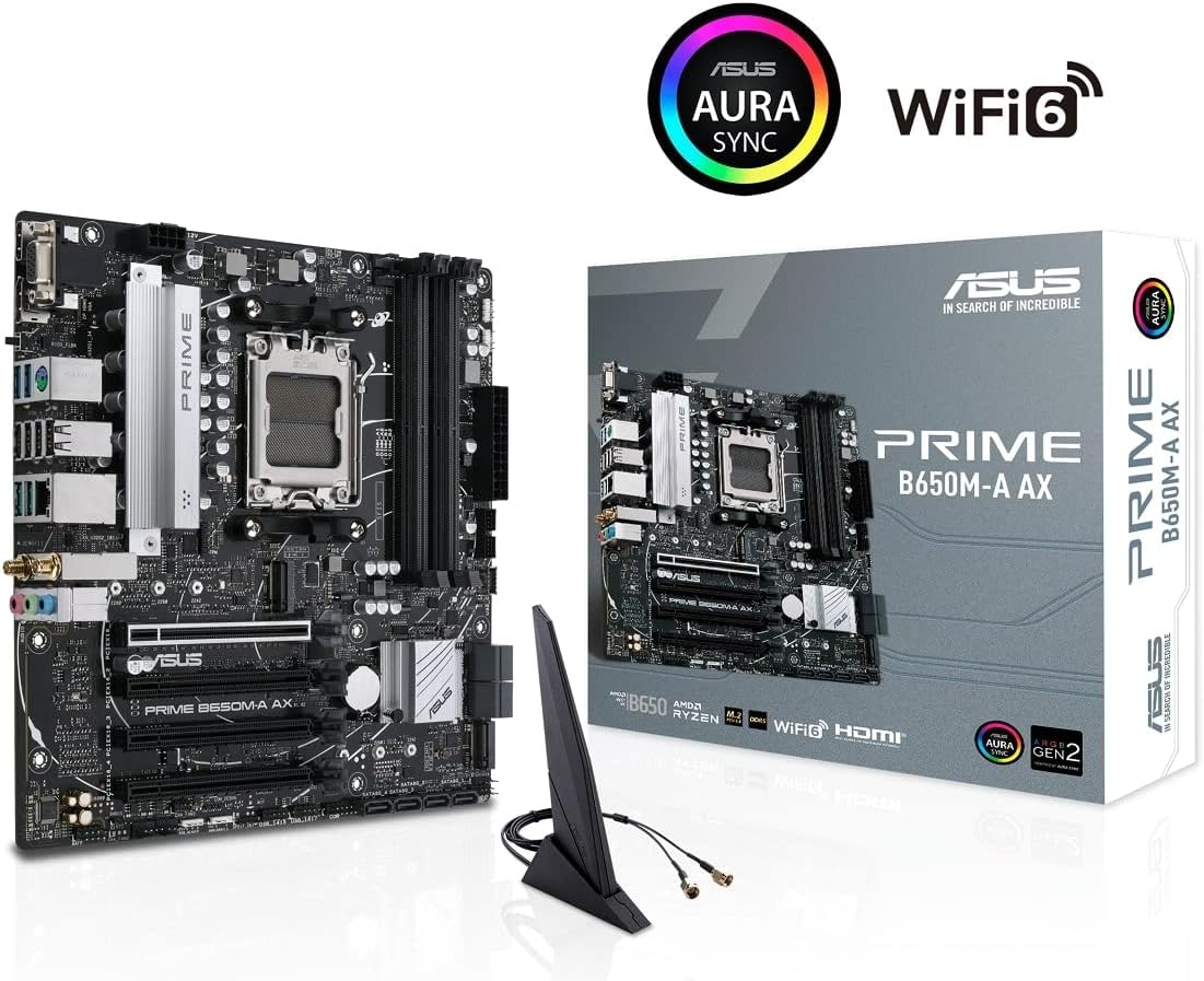 ASUS Prime B650M-A AX AMD B650(Ryzen 7000) Micro-ATX Motherboard(DDR5,PCIe 5.0 M.2,2.5Gb LAN,Wi-Fi 6, DP,USB 3.2 Gen 2 Ports,Front USB 3.2 Gen 1 Type-C®, BIOS Flashback™, CEC Tier II Ready) (Renewed)