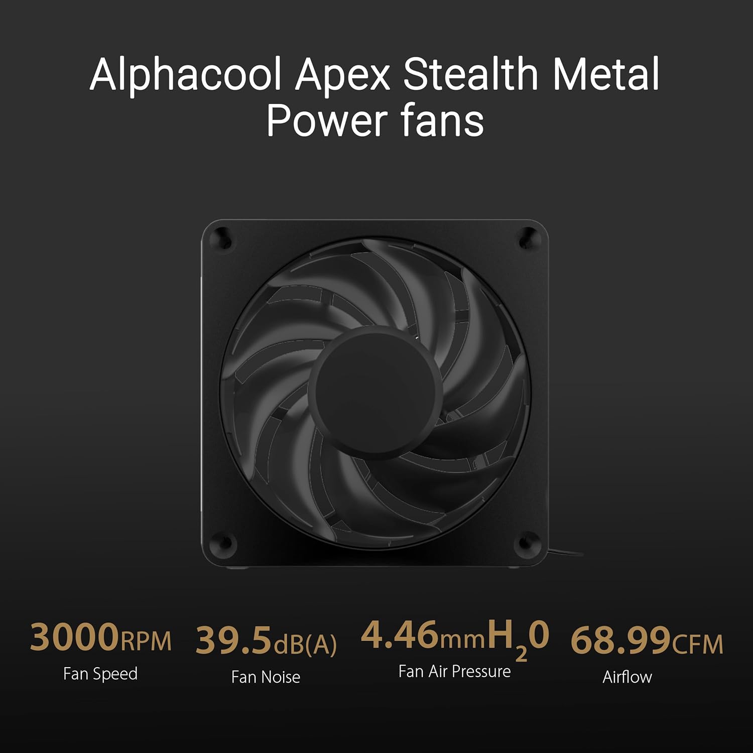 Matte black Alphacool Apex Stealth Metal Power fans offer high performance up to 3000 RPM, low noise and daisy-chain installation