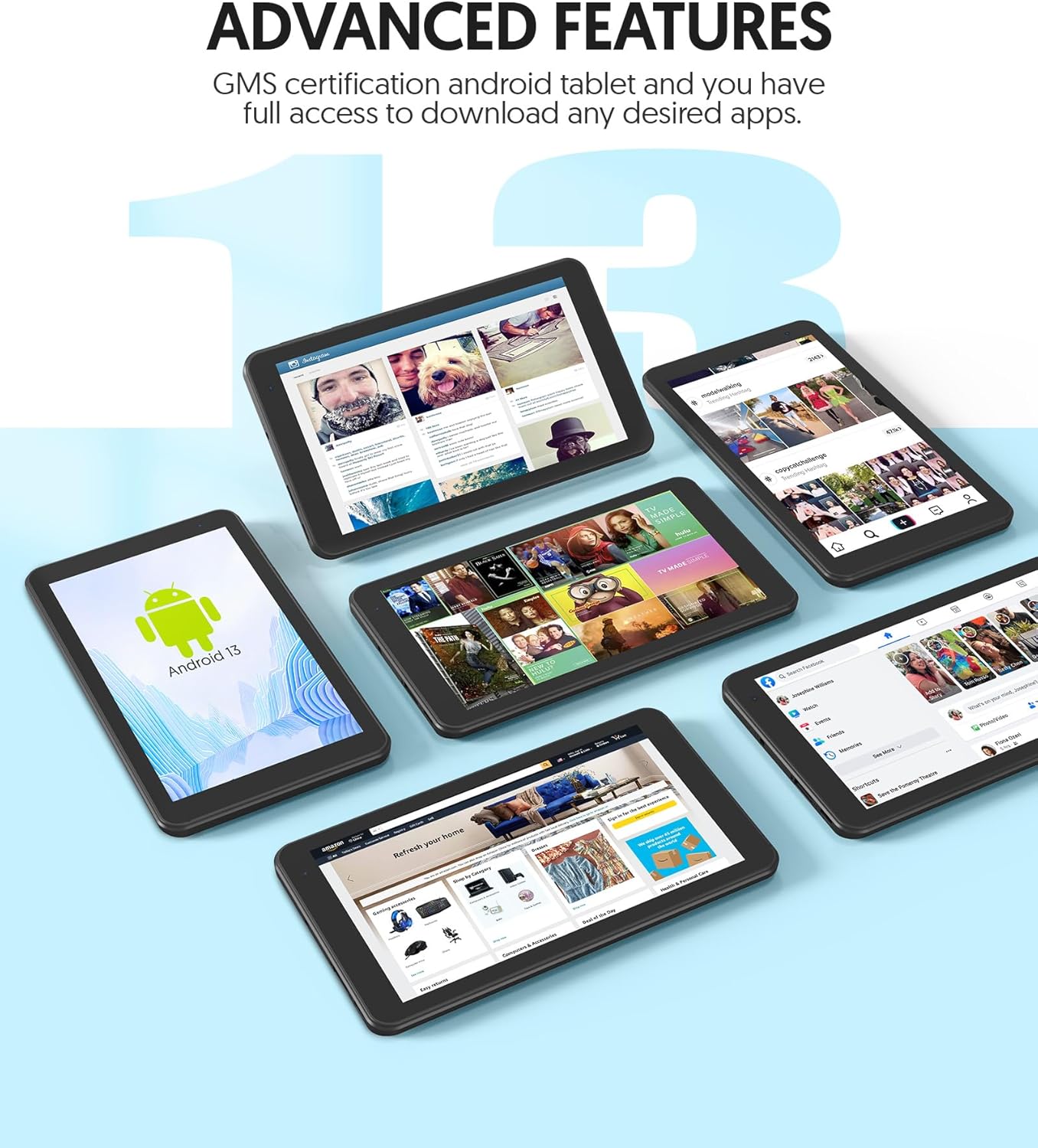 ANDROID 13 TABLET – This Android tablet features a Android 13 operating system and a powerful processor that accelerates the processing speed and provides an uninterrupted entertainment experience.