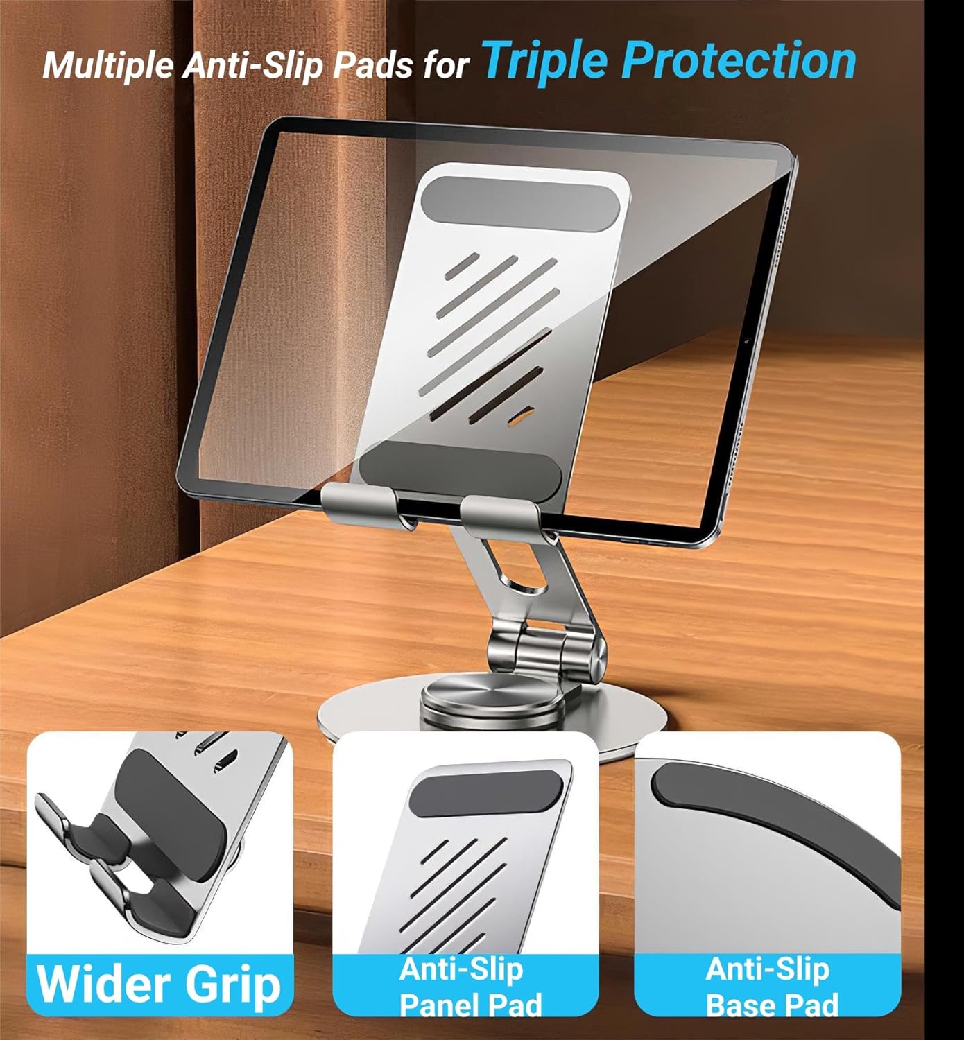 【Dual-Axis Adjustment for Optimal Comfort】Thanks to advanced 3.0 mechanical dual-axis technology, our stand can be rotated up to 10,000 times without losing stability. This allows you to easily find the perfect viewing angle on any surface—whether it’s your desk or kitchen counter—while being kinder to your neck and spine. Say goodbye to discomfort during long viewing sessions.