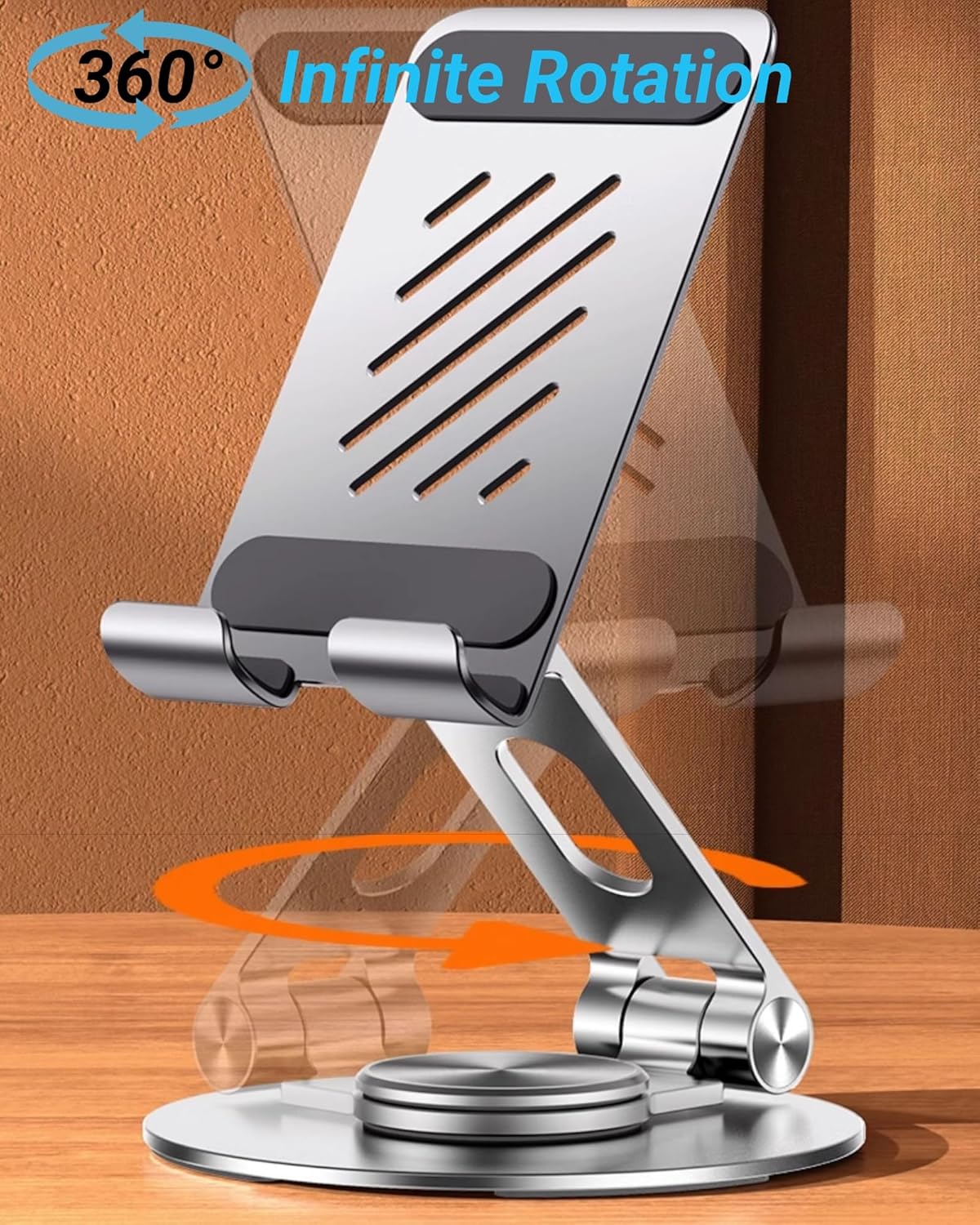 5 reviews for Cell Phone Stand for Desk, Cliifora 360° Rotatable Phone Holder, 360° Click-Rotating, Metal Base, Foldable, Portable, Phone Holder Compatible with All Mobile Phone, iPhone, iPad, Tablet (Sliver)