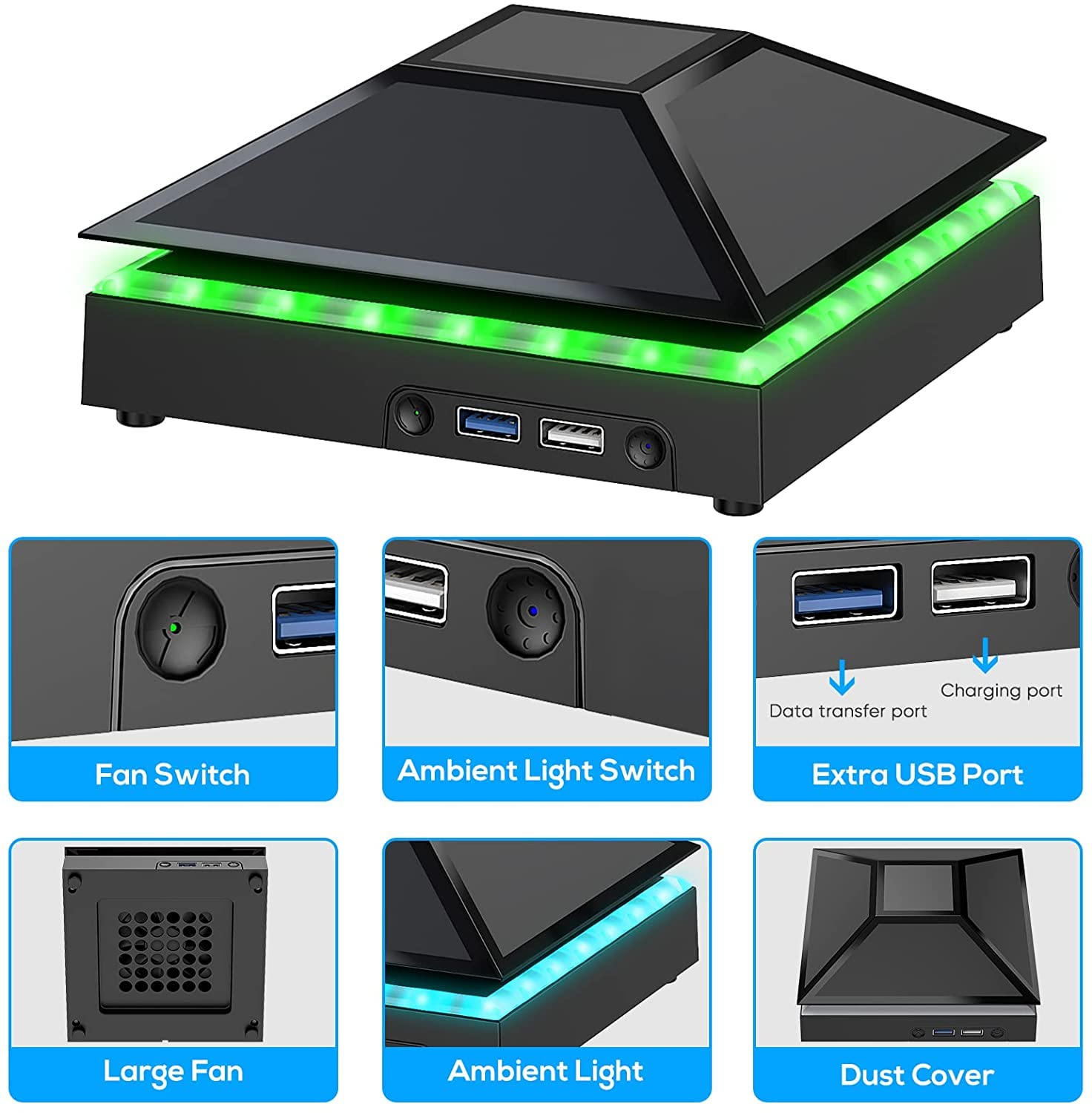 Multiple Functions: The top dust cover is designed to avoid the common dust accumulation phenomenon when the fan is exhausting heat, and reduce the damage of dust to the XBOX series X