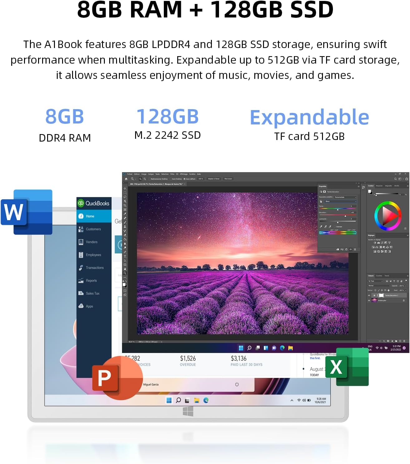 Powerful performance – A1 is equipped with Intel Pentium N5030 processor (4C/4T, Up to 3.10 GHz, TDP 6W), 8GB DDR4 RAM, and 128GB high-speed SSD, providing you with ultra-fast performance and ample storage space. Ensure efficient multitasking. It has a built-in 7600hAm/28.12Wh large-capacity battery, so you no longer have to worry about battery life.