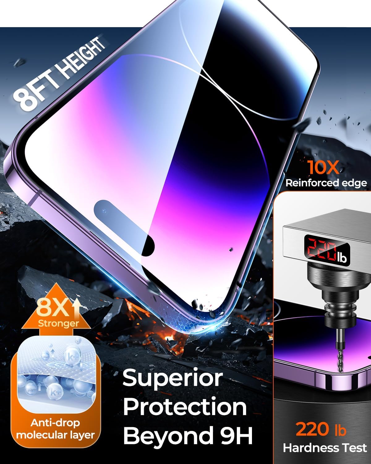 4-Pack Design for iPhone 14 Pro Max: Includes 4-pack for iPhone 14 Pro Max privacy Screen Protector. Top tempered glass material, Its quality twice better than other brands.