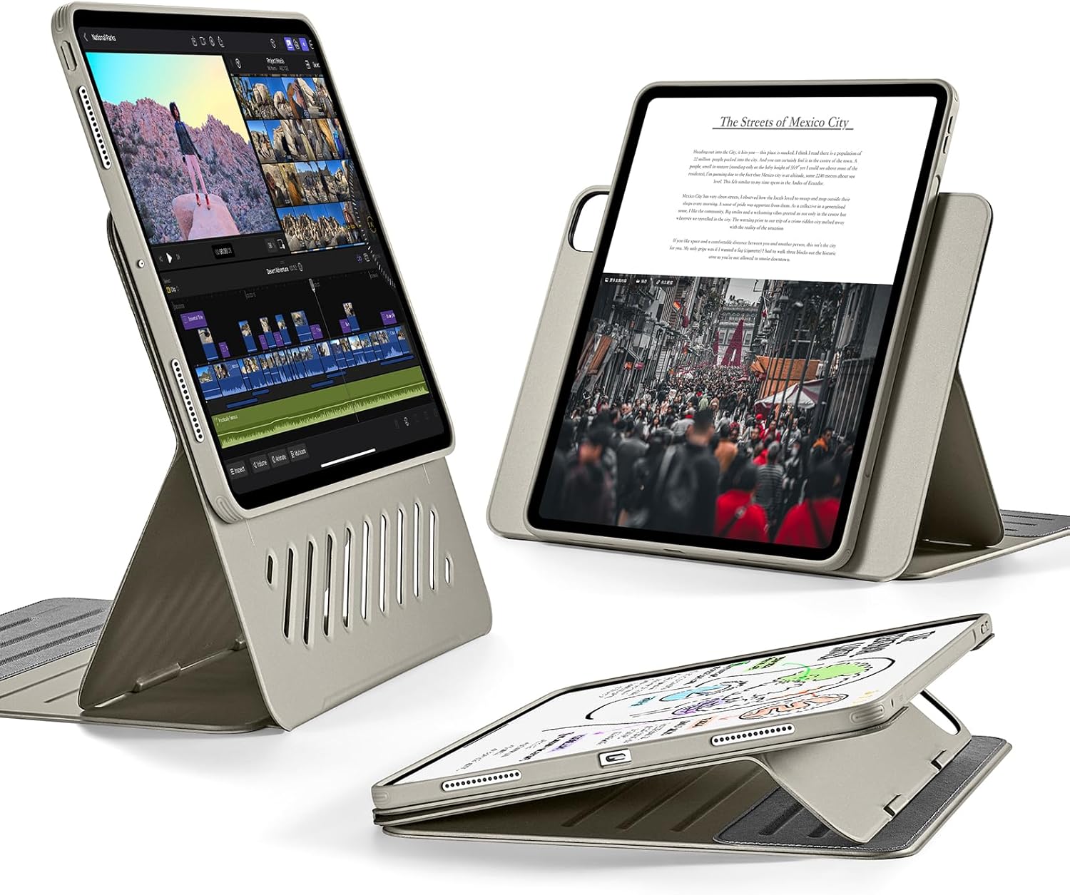 Ultra-stable Stand: wide support brackets magnetically lock into grooves in the base to give you superior stability, even when using your iPad Pro on your lap