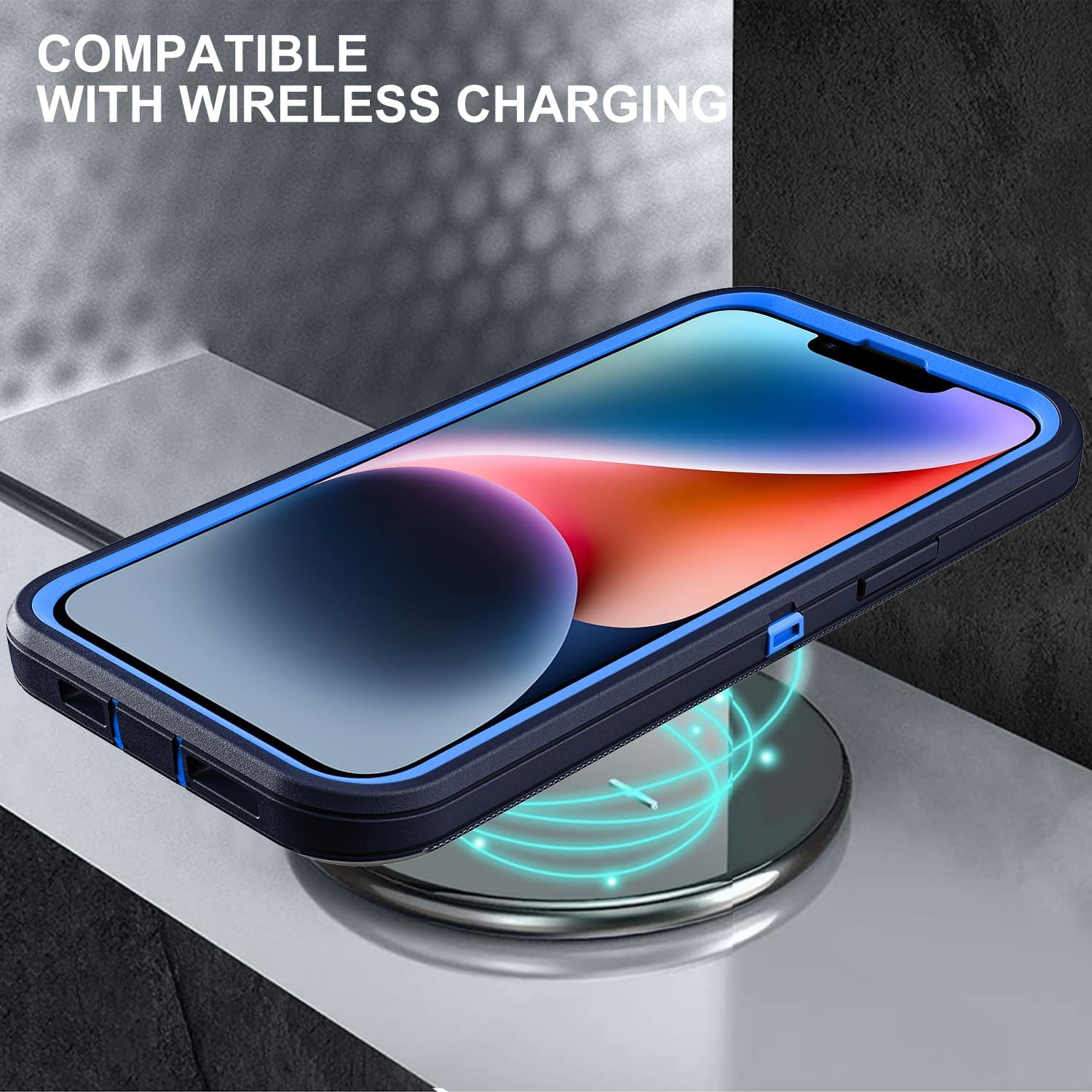 8 reviews for for iPhone 13 Case/iPhone 14 Case, Military Grade 3 in 1 Heavy Duty Shockproof/Drop Proof/Dust Proof Case with 2Pcs Tempered Glass Screen Protector (Navy Blue)