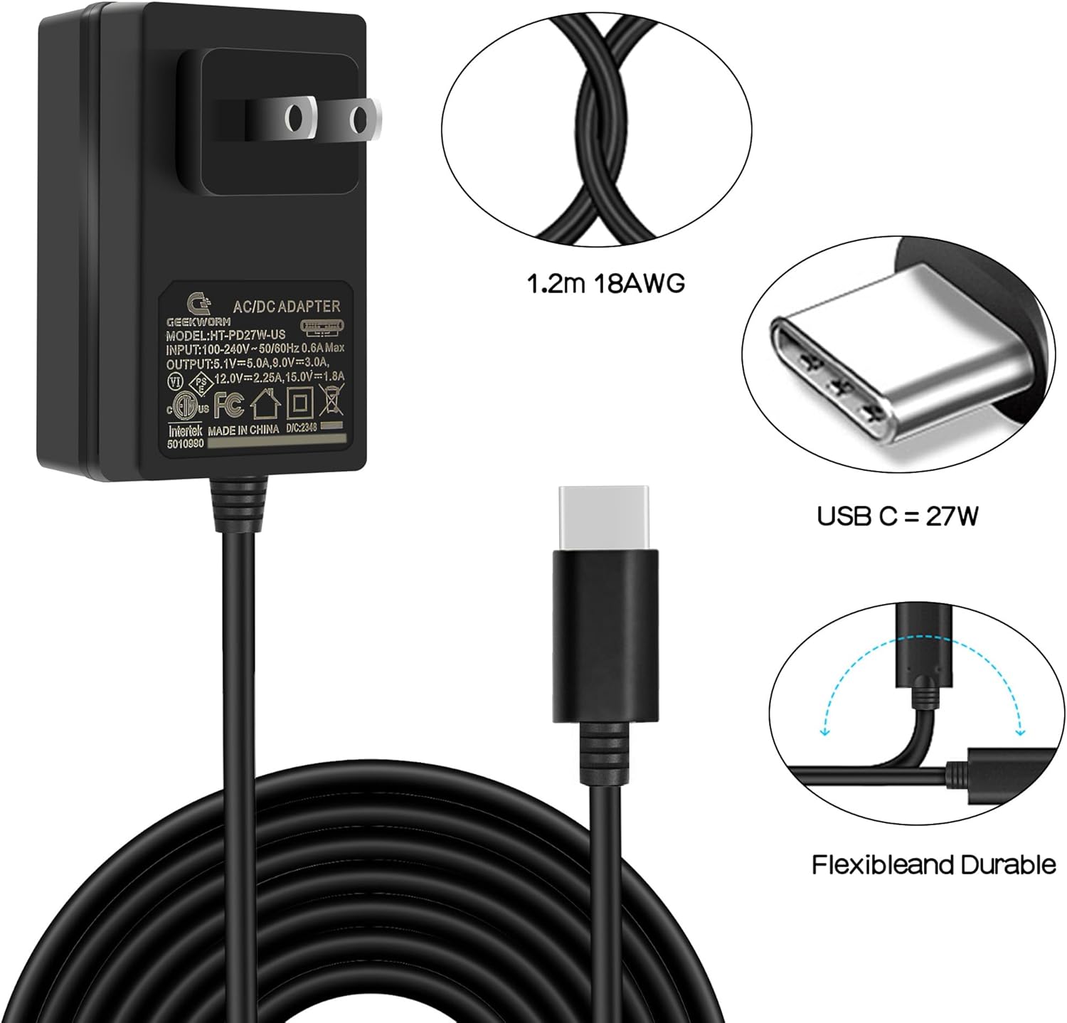 Geekworm PD 27W 5.1V 5A USB-C Power Supply for Raspberry Pi 5 2GB/4GB/8GB