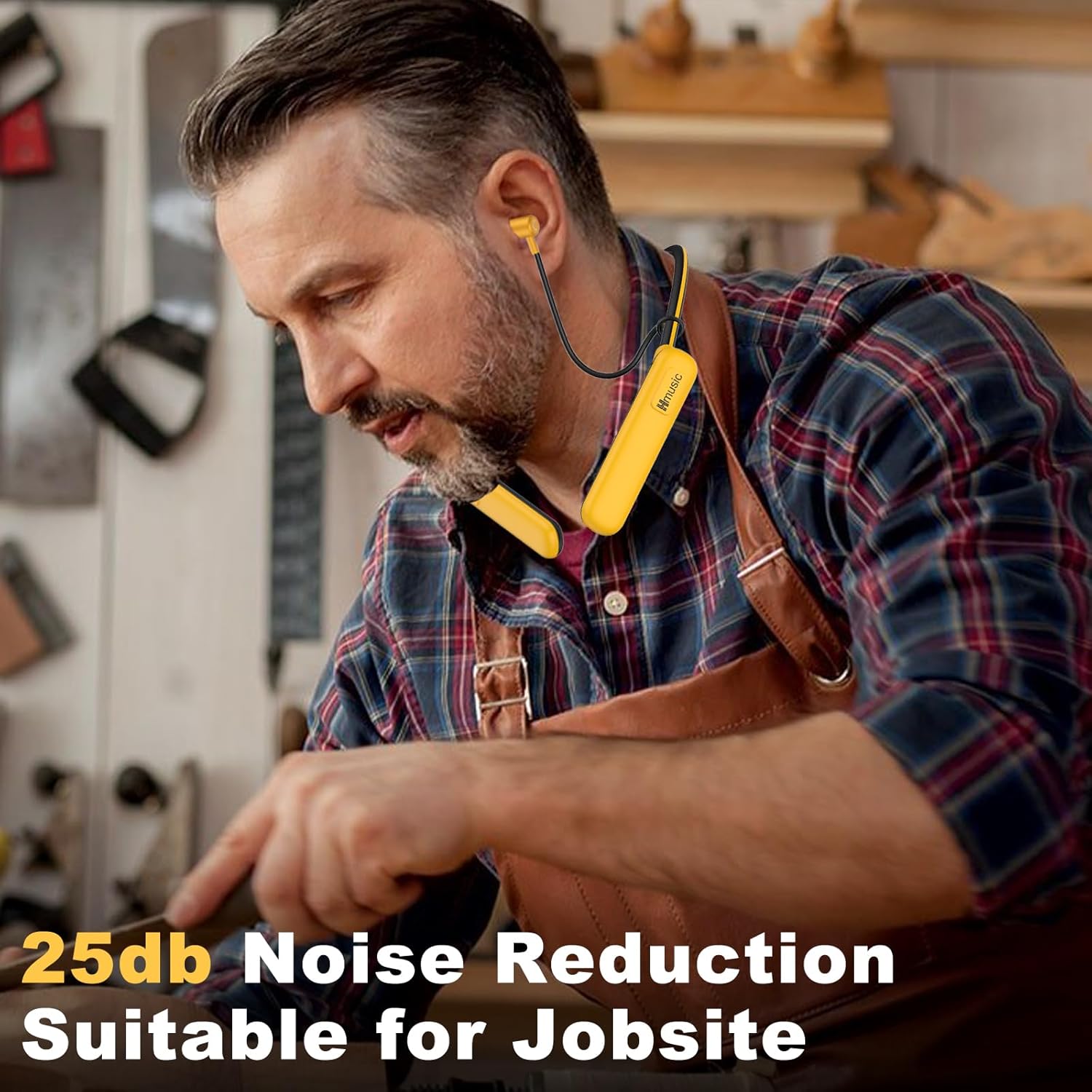 【Lessen Loud Noises Earphones】this neckband headphones feature noise isolating ear tips, ensuring a comfortable fit while reduce nosie in noisy surroundings such as jobsite (power tools, lawn movers, engines, etc.). They are great for hearing protection.