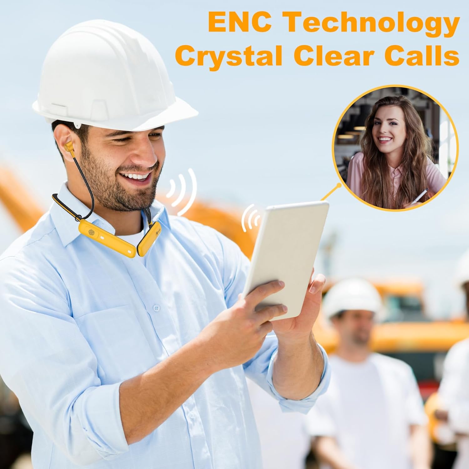 【ENC Microphone Headset】This jobsite headphone builts-in ENC Mic which can cancel out the embien noise, allowing you to have crystal clear phone calls even with noisy backgrounds.