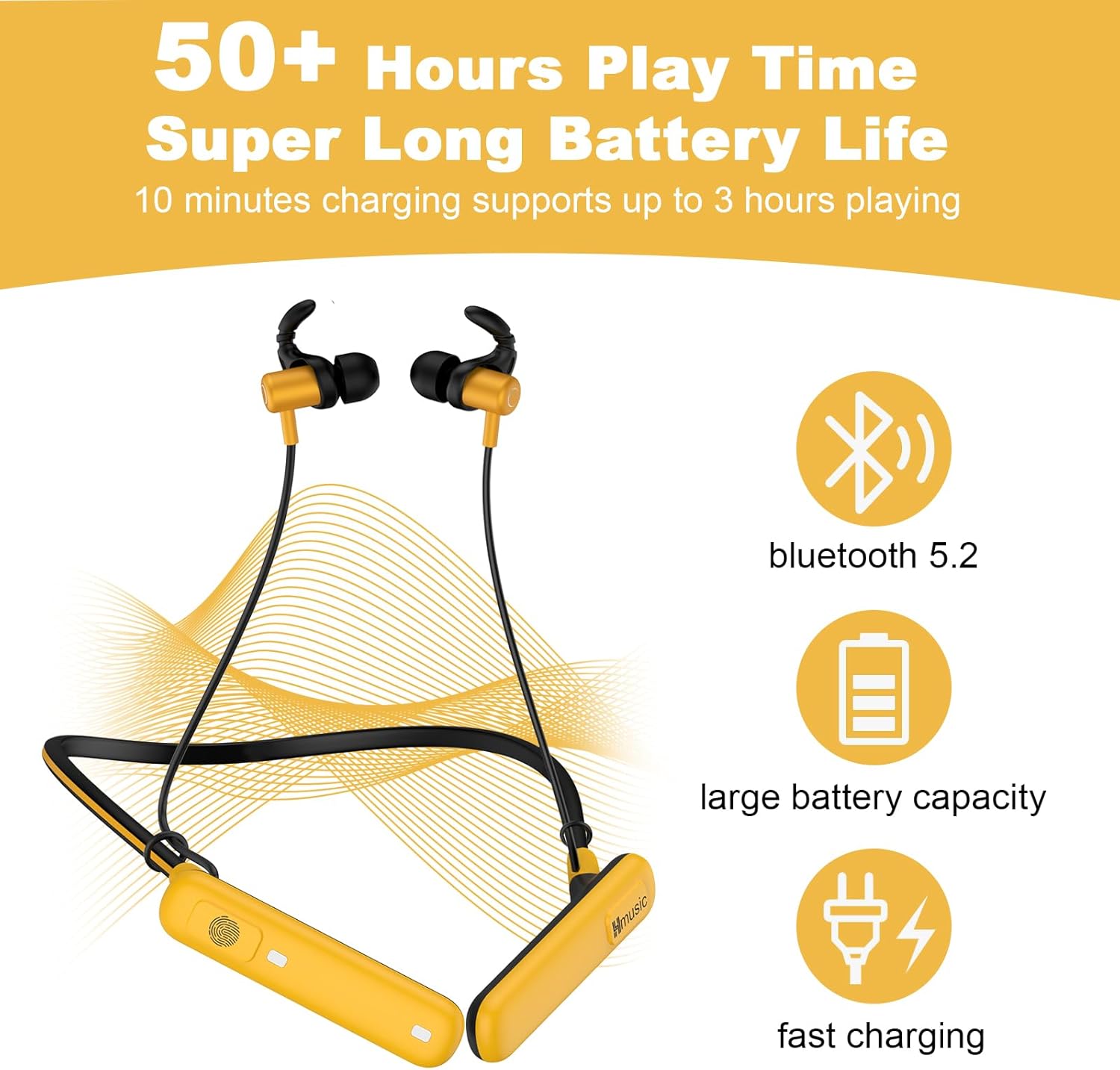 13 reviews for Hmusic Bluetooth Headphones Neckband, (FCC-ID 2A8UE-H23) 80H Playtime, IPX7 Waterproof Wireless Earphones, Noise Isolation, Hearing Protecion Wireless Earbuds for Jobsite, Sports, Running, Gaming