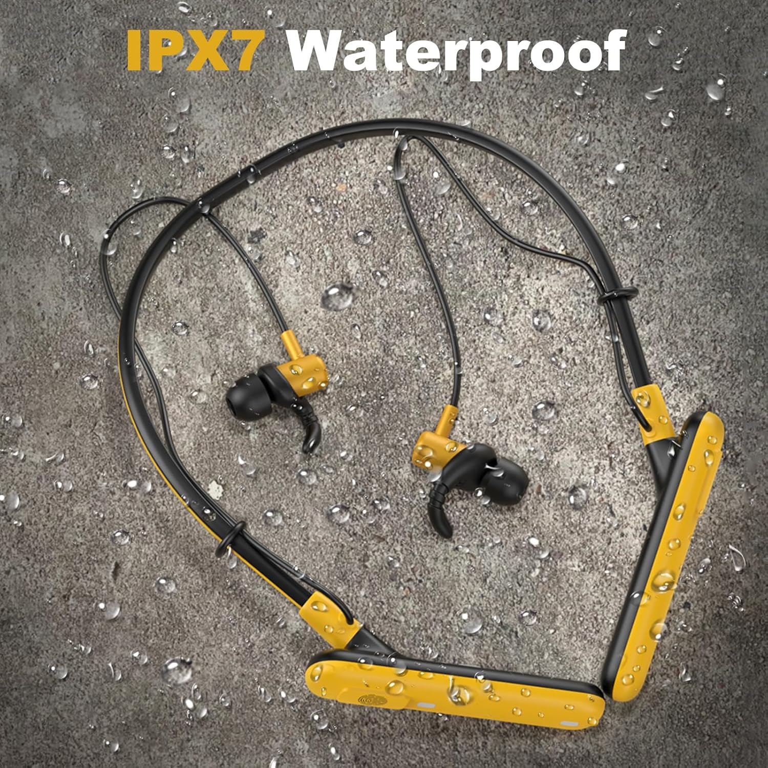 Hmusic Bluetooth Headphones Neckband, (FCC-ID 2A8UE-H23) 80H Playtime, IPX7 Waterproof Wireless Earphones, Noise Isolation, Hearing Protecion Wireless Earbuds for Jobsite, Sports, Running, Gaming