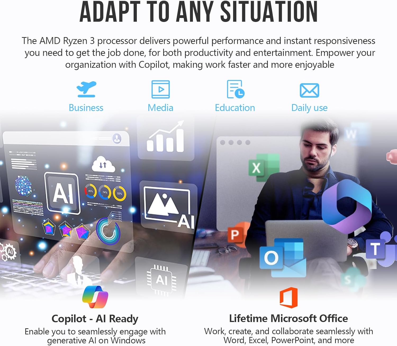 ALL IN THE DETAILS: The essential HP 14 laptop ryzen has a beautiful brushed keyboard for comfortable typing and stylish look. The HP computer laptop also comes with HP True Vision 720p HD camera+dual array digital microphones for lifelike video calls; Enjoy cinematic sound quality with immersive HD Audio tuned stereo speakers. COLLEGE STUDENTS AND WORK LAPTOP WITH MICROSOFT OFFICE INCLUDED LIFETIME: Your creativity gets a boost with Word, Excel, and PowerPoint