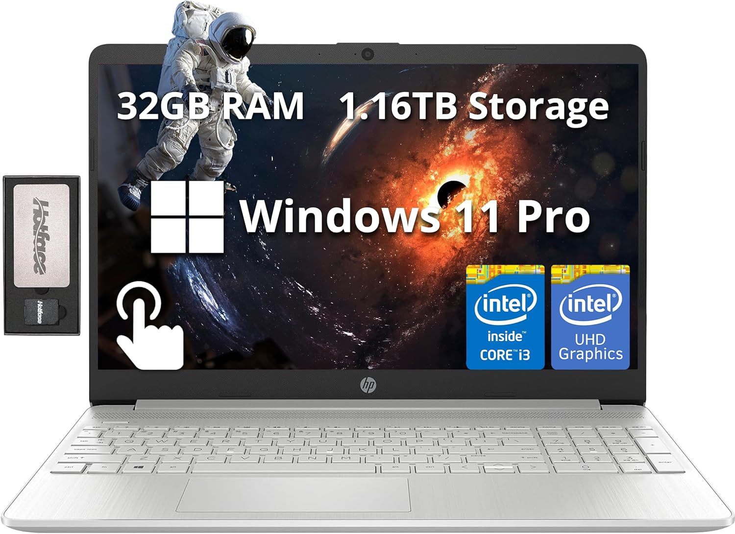 HP 15.6″ Touchscreen Laptop, Intel i3-1215U, 32GB RAM, 1.16TB Storage(1TB SSD + 160GB Docking Station Set), Intel UHD Graphics, Numeric Keypad, Webcam, WiFi, Win 11 Pro, Natural Silver