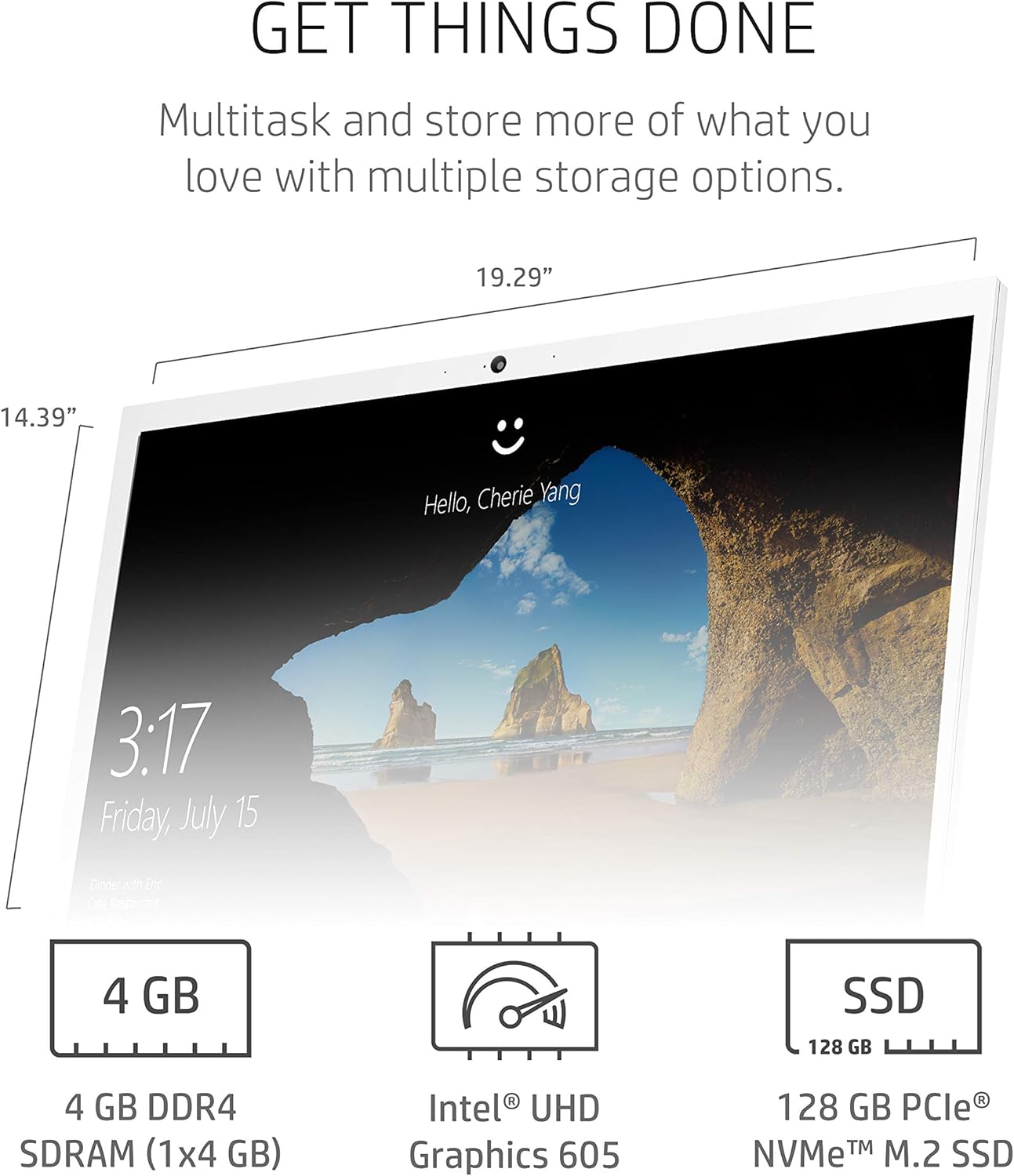 HP 21 All-in-One PC, Intel Pentium Silver J5040 Quad-Core Processor, 4 GB RAM, 128 GB SSD Storage, 20.7-inch Full HD Display, Windows 10 Home with Enhanced Security, Privacy Camera (21-b0020, 2020)