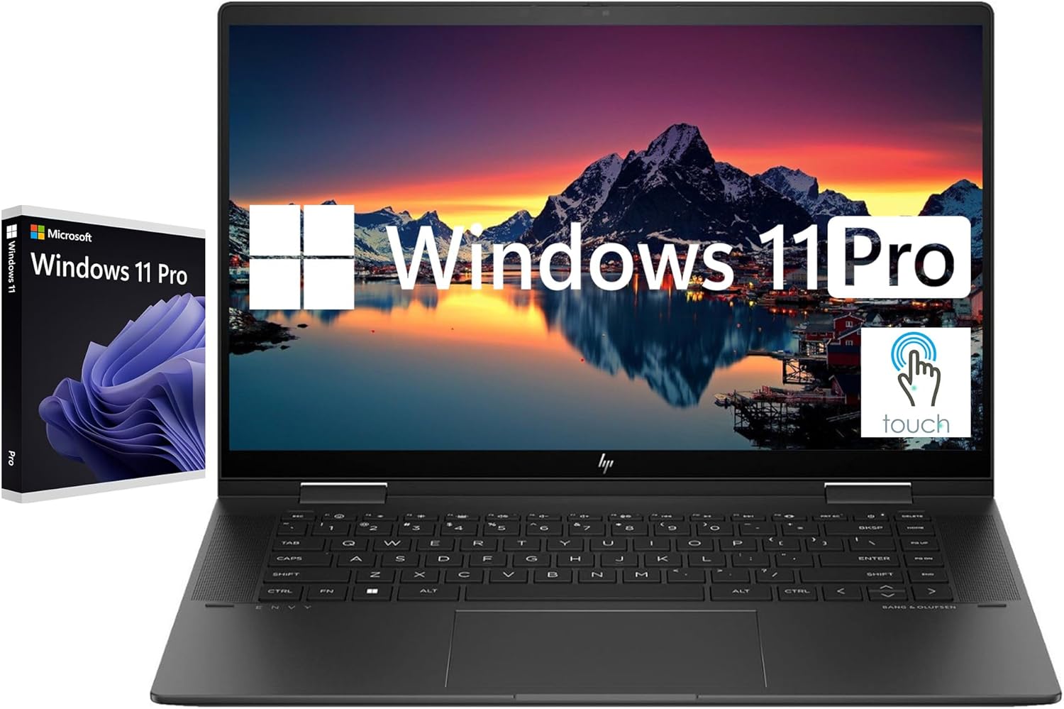 HP Envy x360 15.6″ Touchscreen 2-in-1 Laptop Computer, Windows 11 Pro Laptop 8GB RAM 512GB SSD, AMD Ryzen 5 7530U Processor, FHD 1920×1080 Display, Backlit KB, HDMI, SD Card Reader, Nightfall Black