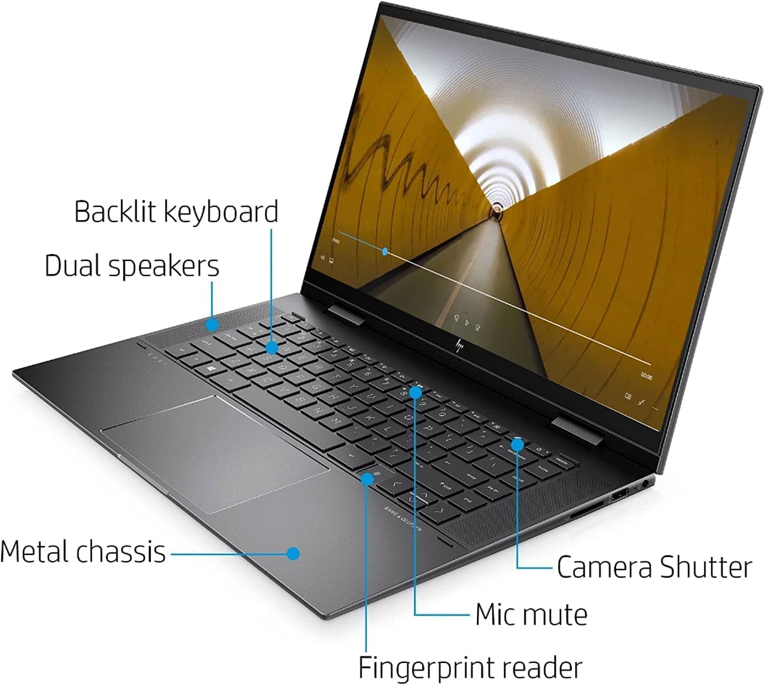 HP Envy x360 2-in-1 Convertible Business Laptop, 15.6-inch FHD Touchscreen, AMD Ryzen 7 5825U, 32GB RAM, 1TB SSD, Windows 11 Pro, Fingerprint Reader, Backlit Keyboard, WiFi 6, PCM
