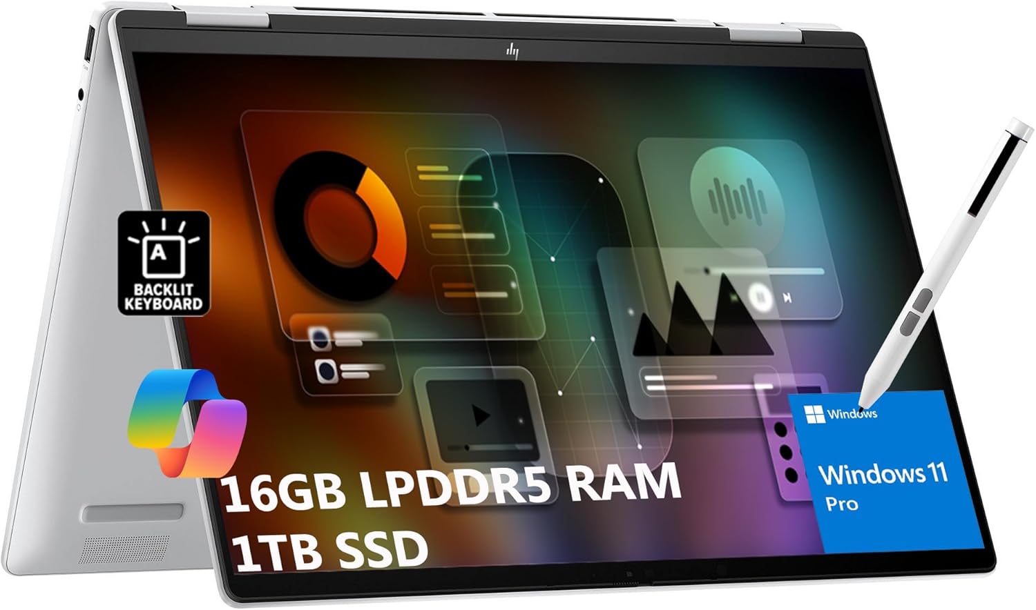 HP Envy x360 2-in-1 Laptop for Creator, Photographer, Designer (14″ FHD+ Touchscreen, AMD Ryzen 5 8640HS, 16GB LPDDR5 RAM, 1TB SSD, IST Stylus) AI PC, Backlit, Wi-Fi 6E, Win 11 Pro w/AI Copilot