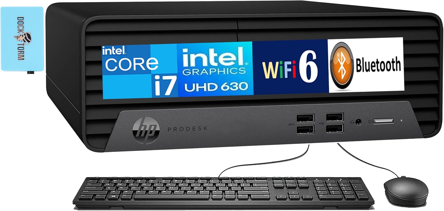 Configuration We offer all of the following configuration, if you have difficulties to find the right listing, please check other Listings on our Store Model Name HP 400 G7 Form/Color Mini Desktop/Black RAM Customizable RAM: 16GB DDR4 RAM, 32GB DDR4 RAM, 64GB DDR4 RAM DIMM Hard Drive Customizable Storage: 512GB PCIe SSD, 1TB PCIe SSD, 2TB PCIe SSD, 4TB PCIe SSD, 8TB PCIe SSD (Solid State Drive) Operating System Window 11 Professional (Win 11 Pro-64) Processor Intel Core i7-10700 2.90GHz Processor (10th Gen, upto 4.8 GHz, 16MB Cache, 8-Cores, 16-Threads, ) Graphics Card Intel UHD 630 Integrated Graphics Connectivity Wi-Fi 6 AX201 Wifi, Bluetooth 5.2, RJ-45 Ports/Slots 5 USB 3.0 Type-A, 4 USB 2.0, 2 HDMI, 1 Display Port, Headphone/Microphone Combo Jack Other Features 210W Power Supply, Black, USB Keyboard, USB Mouse Product Dimensions (WxLxH) 10.50 IN x 12.0 IN x 3.75 IN Weight 8.1lb Includes Authorized Dockztorm Portable USB Hub (Special Edition Portable Dockztorm Data Hub; Super Speedy Data Sync Rate upto 5Gbps)