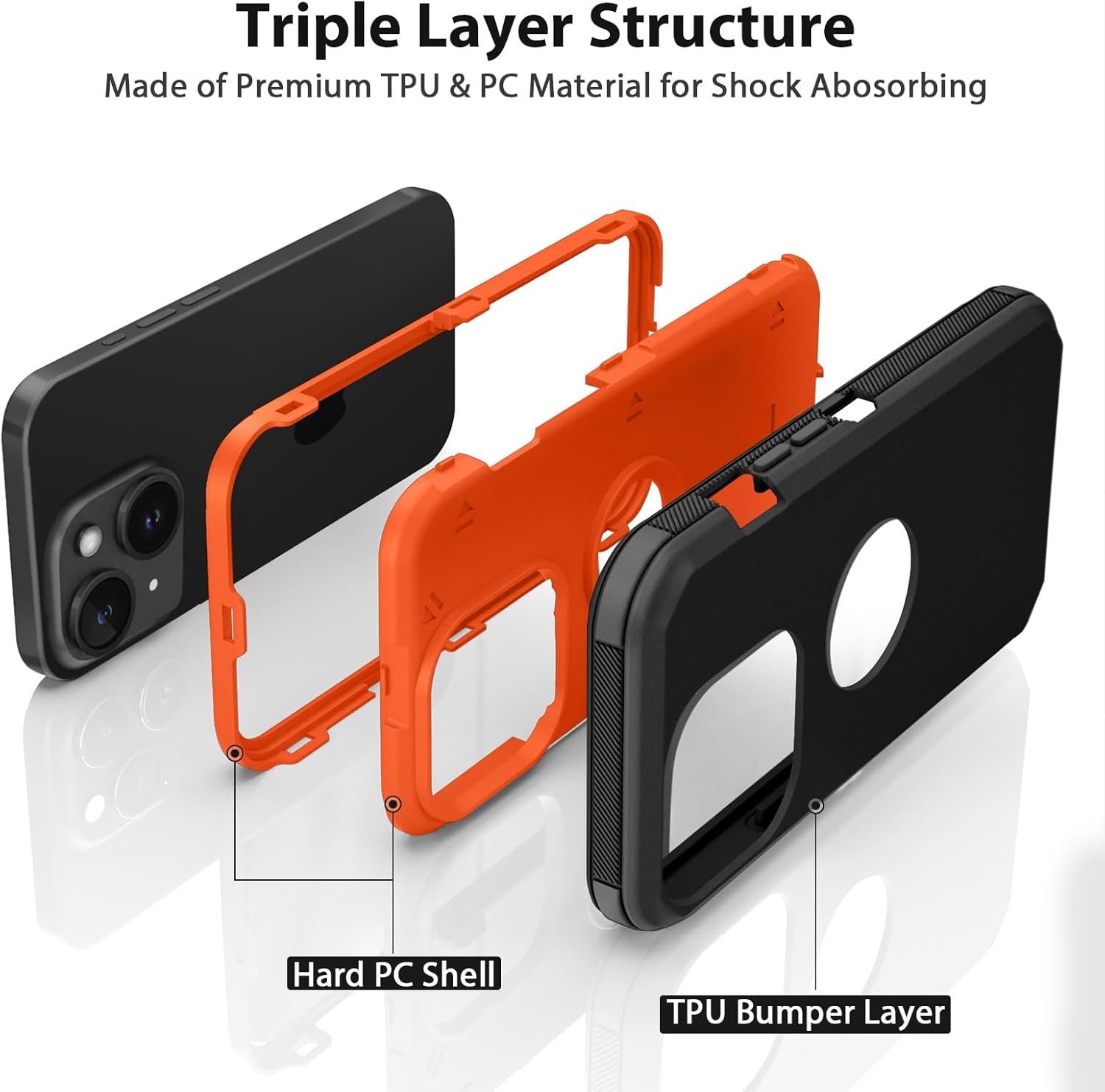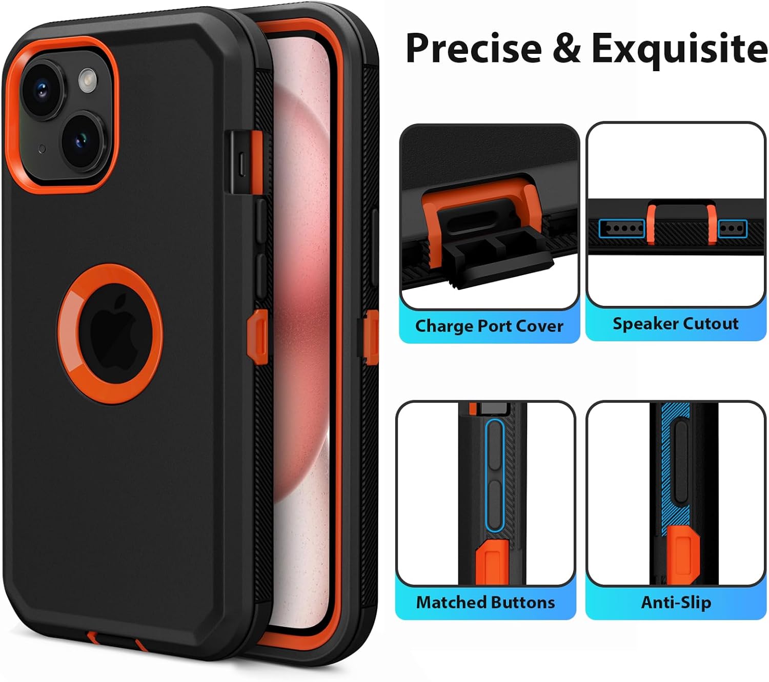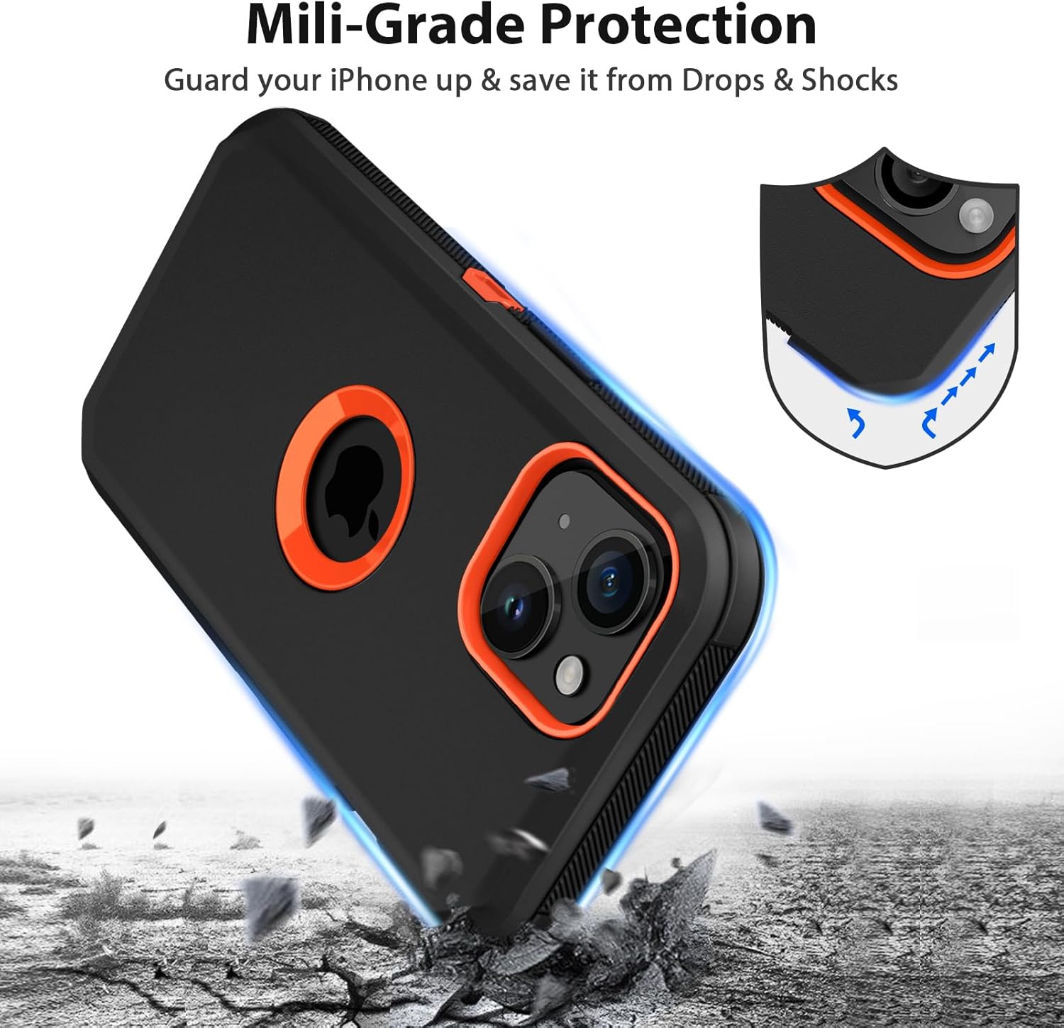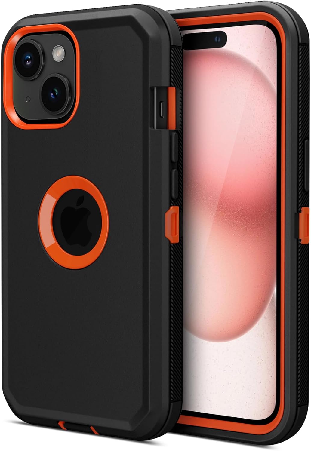 8 reviews for Jiunai for iPhone 15 Case, Heavy Duty Drop Protection Screenless Dual Layer Shockproof Rugged Tough Bumper Dust Proof Phone Case Compatible with iPhone 15 6.1 inches 2023 Released – Black Orange