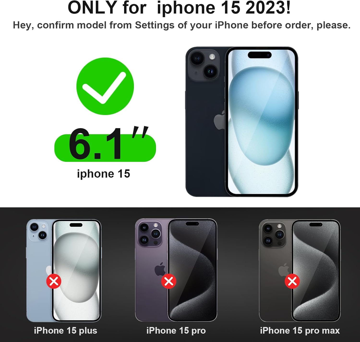 Armor Case is ONLY compatible with iPhone 15 6.1 inches 2023 Released with 2 Lens on Camera. Confirm the phone model from Settings – General – About – Model Name(iPhone 15) before order.