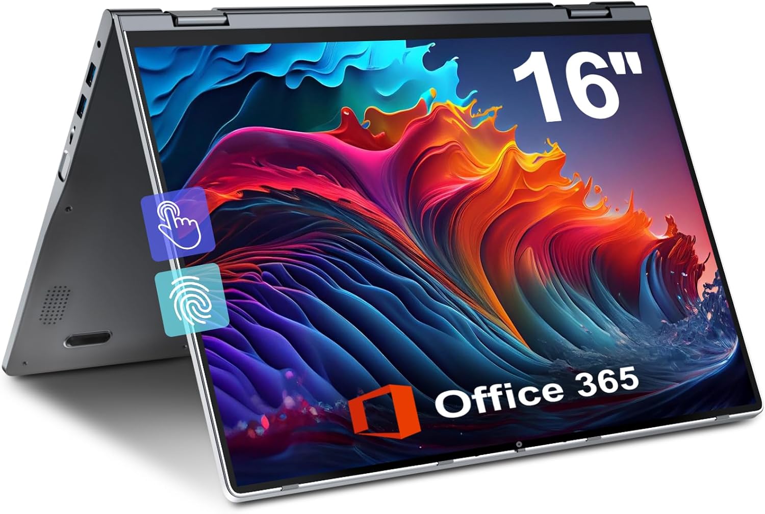 jumper 2 in 1 Laptop, 16 inch Convertible Laptop Computer with IPS FHD 360 Degree Touchscreen, 640GB Storage, 16GB RAM, Fingerprint Reader, Backlit Keyboard, One Year Office 365, Celeron N5095, 53.2WH