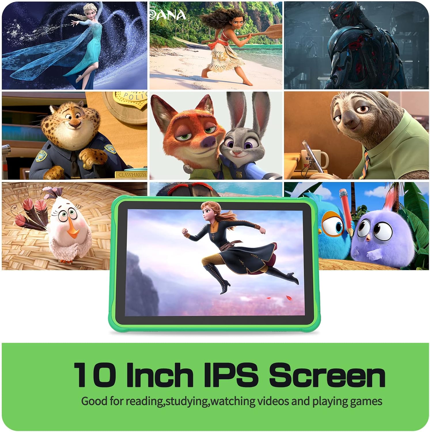 Kids Tablet 10 Inch,Android Tablet for Toddler,Kids Learning Tablet with Dual Camera,32GB Kids WiFi Tablets,6000MAH,Kid-Proof Case (Green)