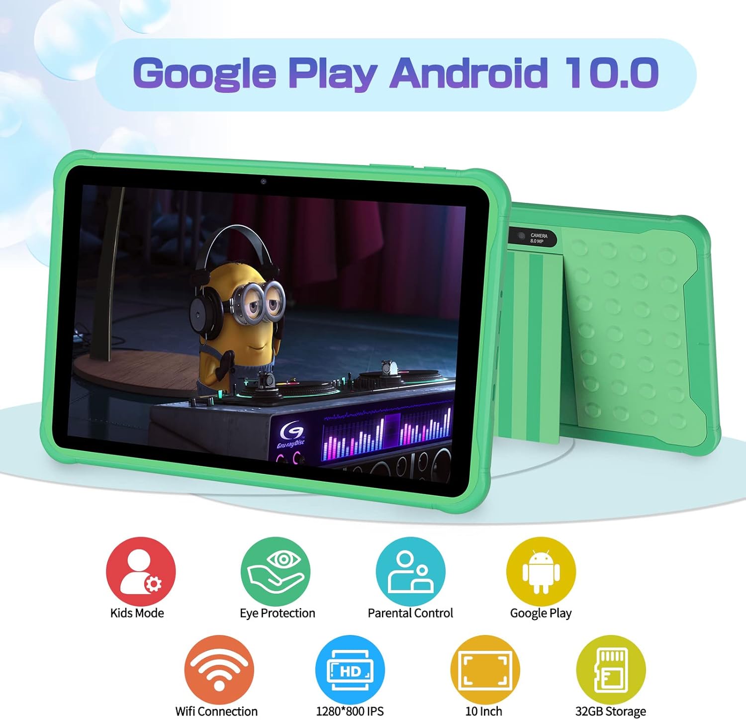 Kids Tablet 10 Inch,Android Tablet for Toddler,Kids Learning Tablet with Dual Camera,32GB Kids WiFi Tablets,6000MAH,Kid-Proof Case (Green)