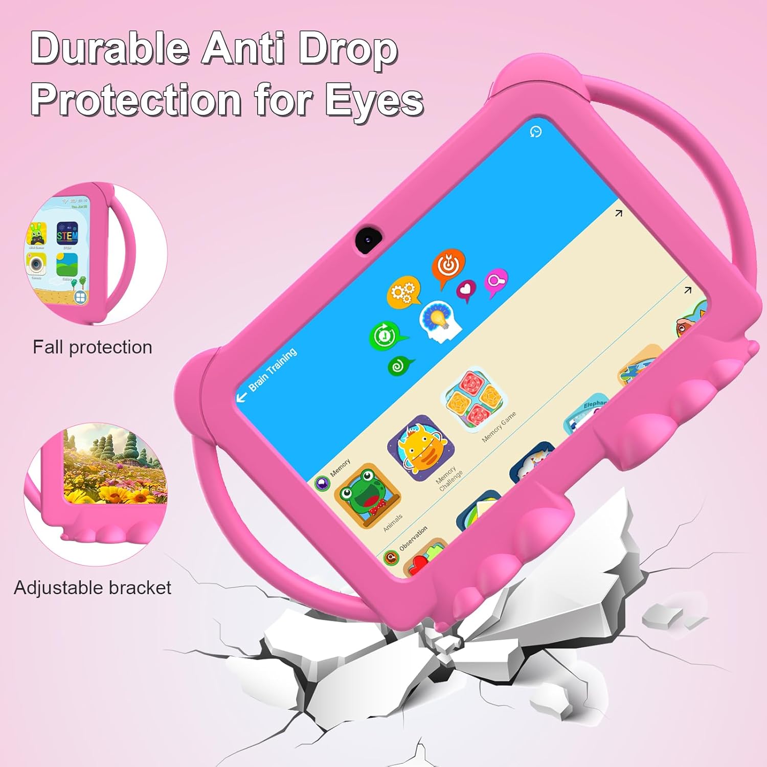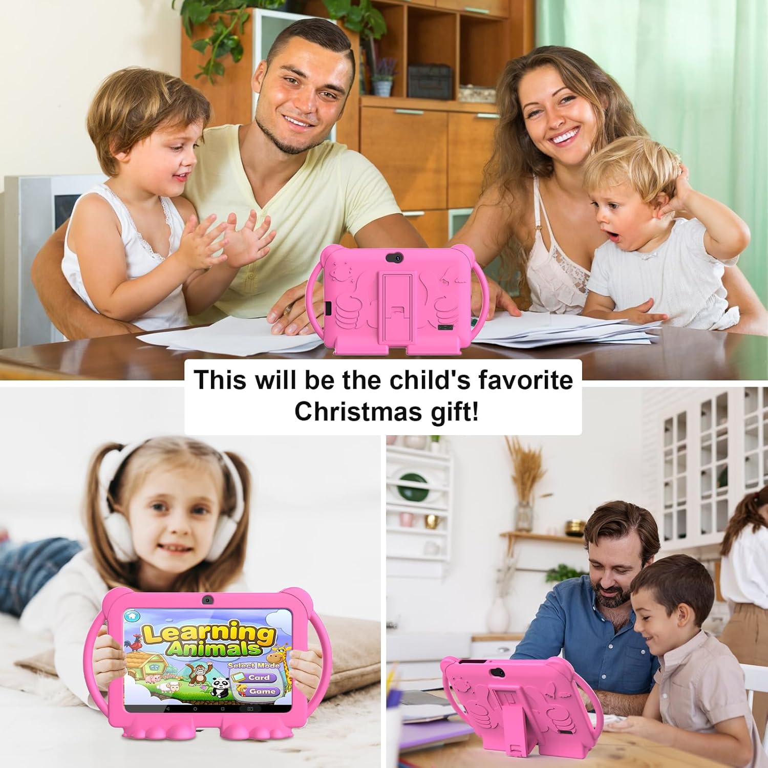Kids Tablet, 7 inch Android 12 Tablet for Kids, 4GB RAM 32GB ROM 1TB Expand, Toddler Tablet with Parental Control, IPS Screen, Dual Camera, Educational, Games, Shockproof Case for Boys/Girls (Pink)