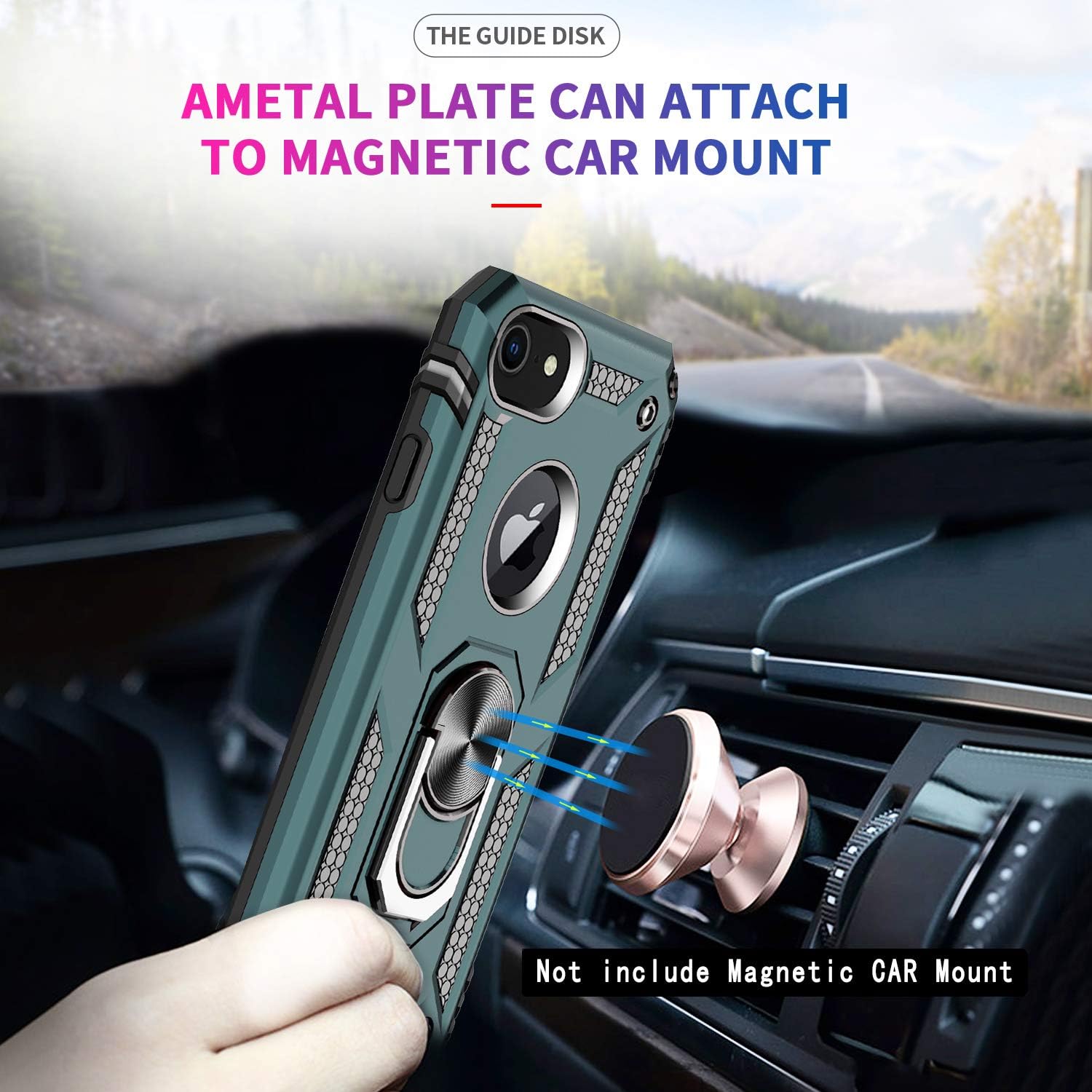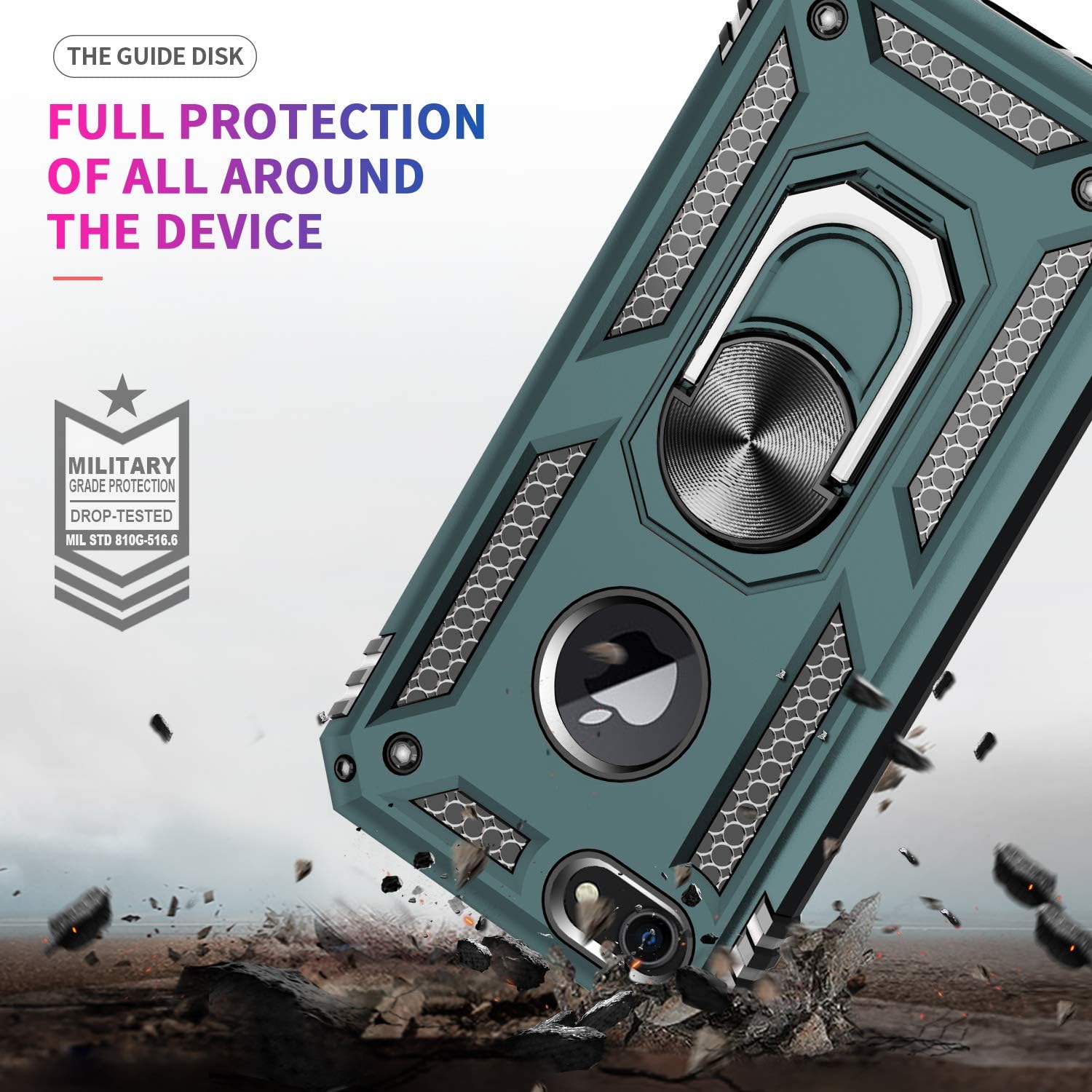 LeYi Compatible for iPhone 8 Case, iPhone 7 Case, iPhone 6s/ 6 Case with [2 Pack] Tempered Glass Screen Protector, Military-Grade Phone Case with Ring Kickstand for iPhone 6/6s/7/8, Midnight Green