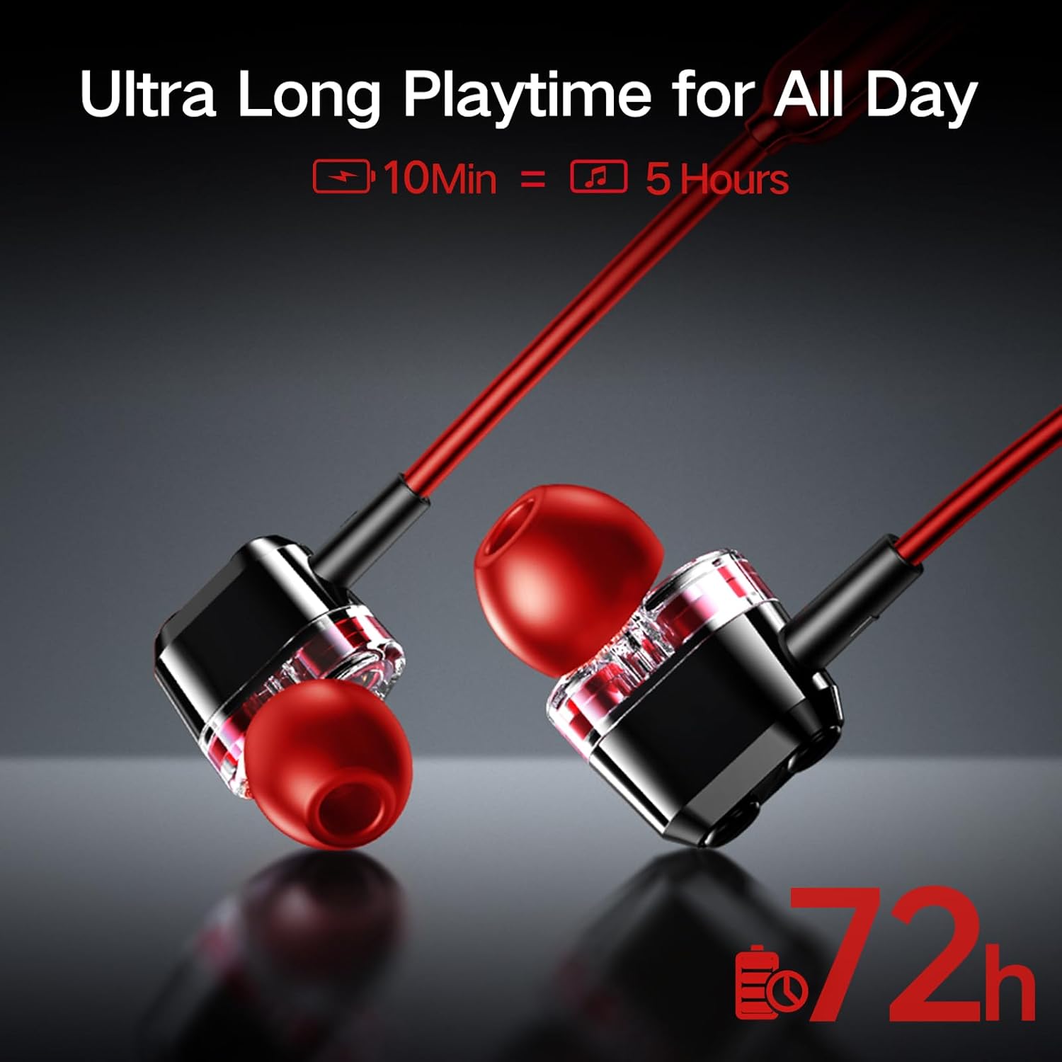 【72H Lasts All The Work Week】Enjoy audio that lasts for Week.The Neckband Earphones equipped with upgraded batteries, a single 1.5 hours full charge provides an impressive 72 hours of continuous listening pleasure, a 10-minute charge enables 5 hours of listening. That’s not all, it also offers a standby time of 480 hours, ensuring that you have a reliable audio companion for all your long-term outdoor sports and fitness activities.