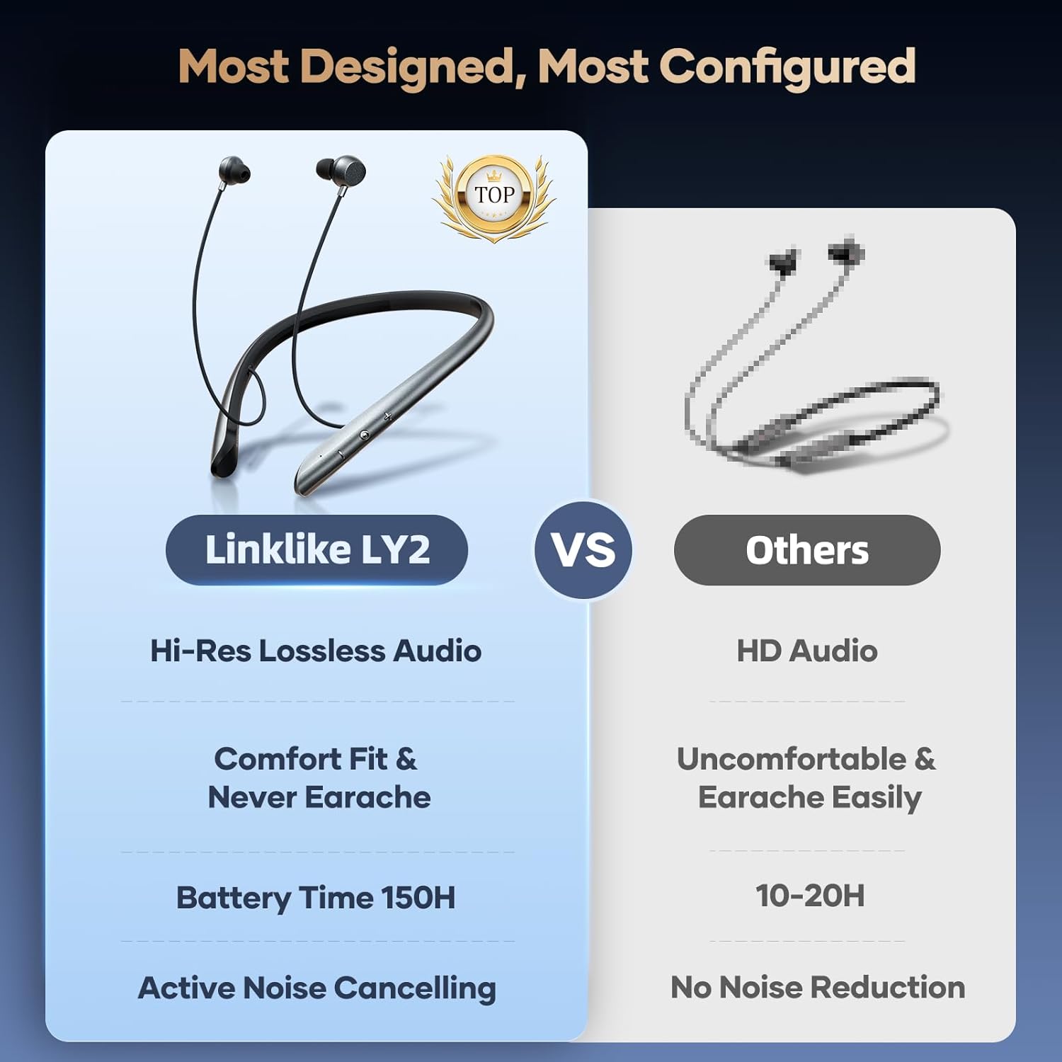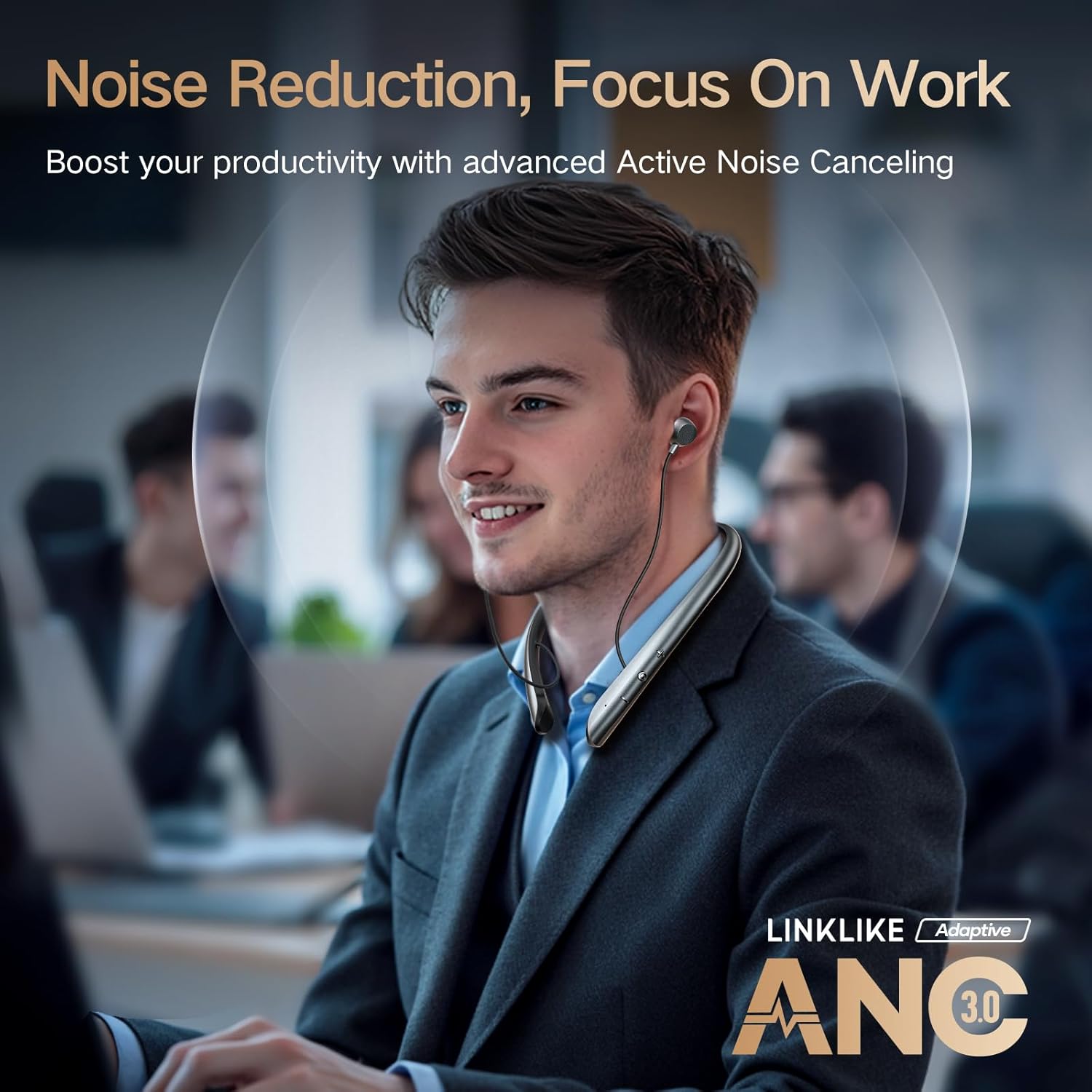 Linklike Neckband Bluetooth Headphones,Wireless Bluetooth 5.3 Headphones,Hi-Res Bass Sound,Comfort Neckband Fit,150H Battery, Noise Cancelling Wireless Earbuds,Magnetic Earphones for Work Business