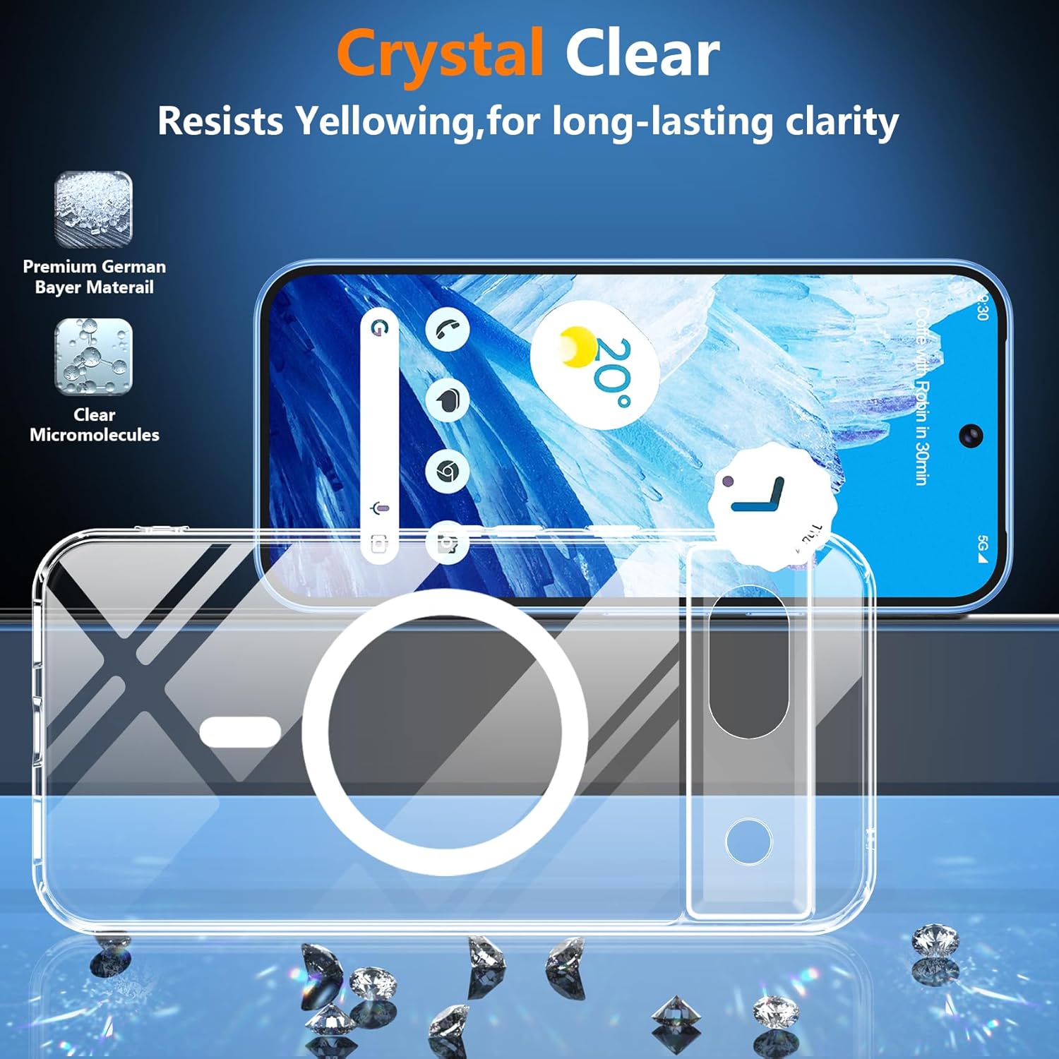 Teloxy Magnetic for Google Pixel 8A Case, [Military Drop Protection] [Anti-Fingerprint] Slim Clear Durable Phone Case,Clear