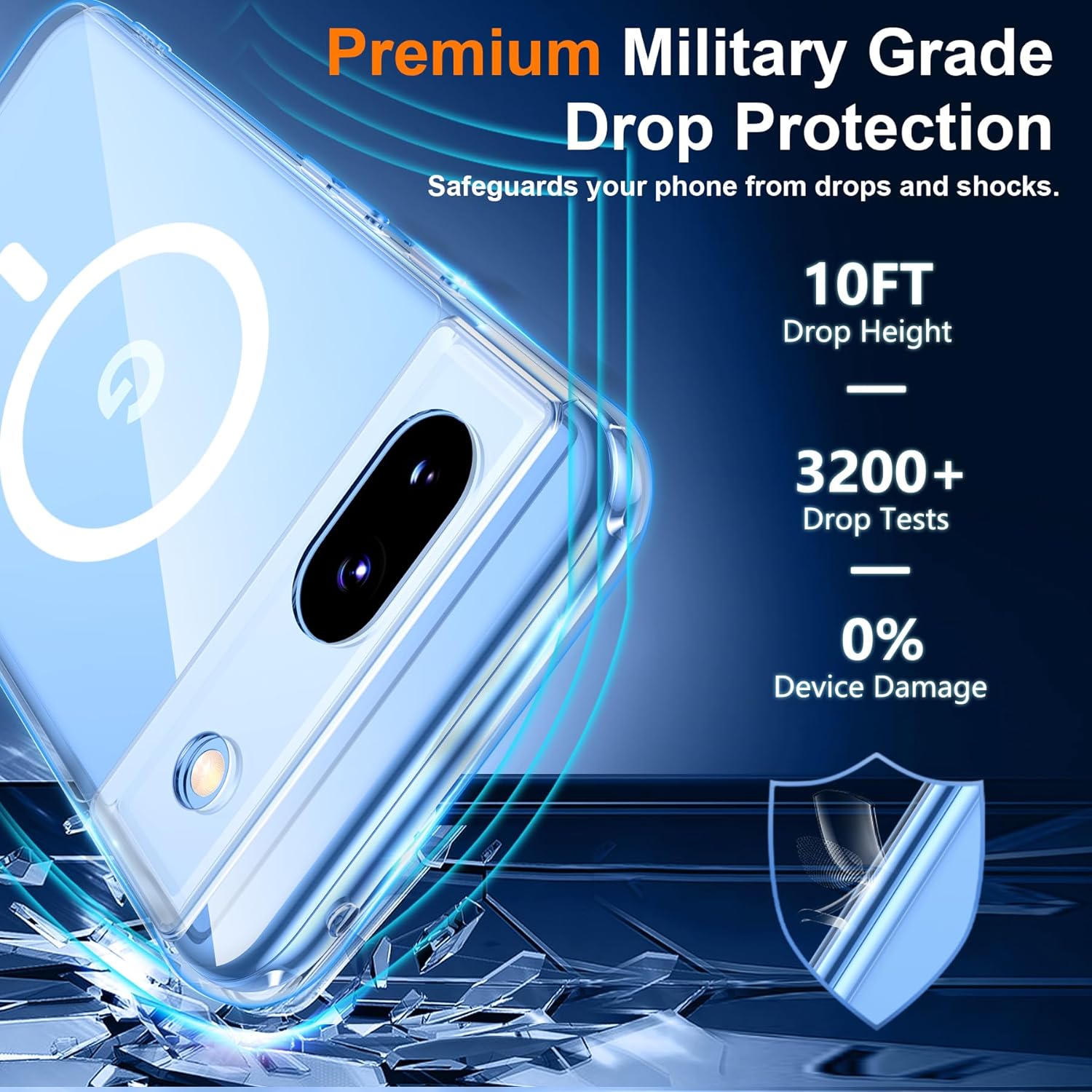 Magnetic for Google Pixel 8A Case, [Military Drop Protection] [Anti-Fingerprint] Slim Clear Durable Phone Case,Clear