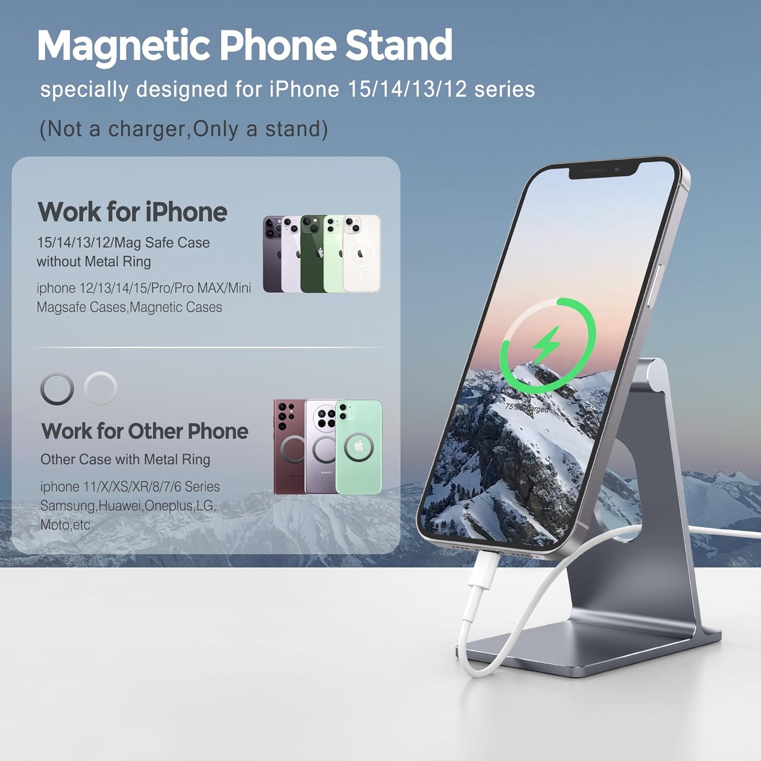 Magnetic Phone Stand for Desk: This magnetic phone stand is specially designed phone magnet for desk. This magnetic phone stand can hold iPhone16 15 14 13 12 pro max plus mini phones directly; This magnetic phone holder for desk also works for Original Official MagSafe case and other brands’ built-in MagSafe cases, no need to use the additional magnet plates. Most Popular Gift for families and friends.