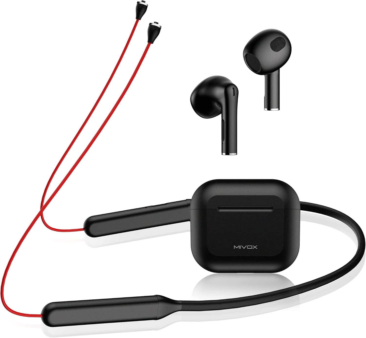 MIVOX F2 3-in-1 Wireless Headset Bluetooth Earbud – Noise Cancellation Bluetooth Neckband Headphones – in-Ear Charging Neckband Headphones – Traveling, Workout, Sports – 38 Hours Play Time
