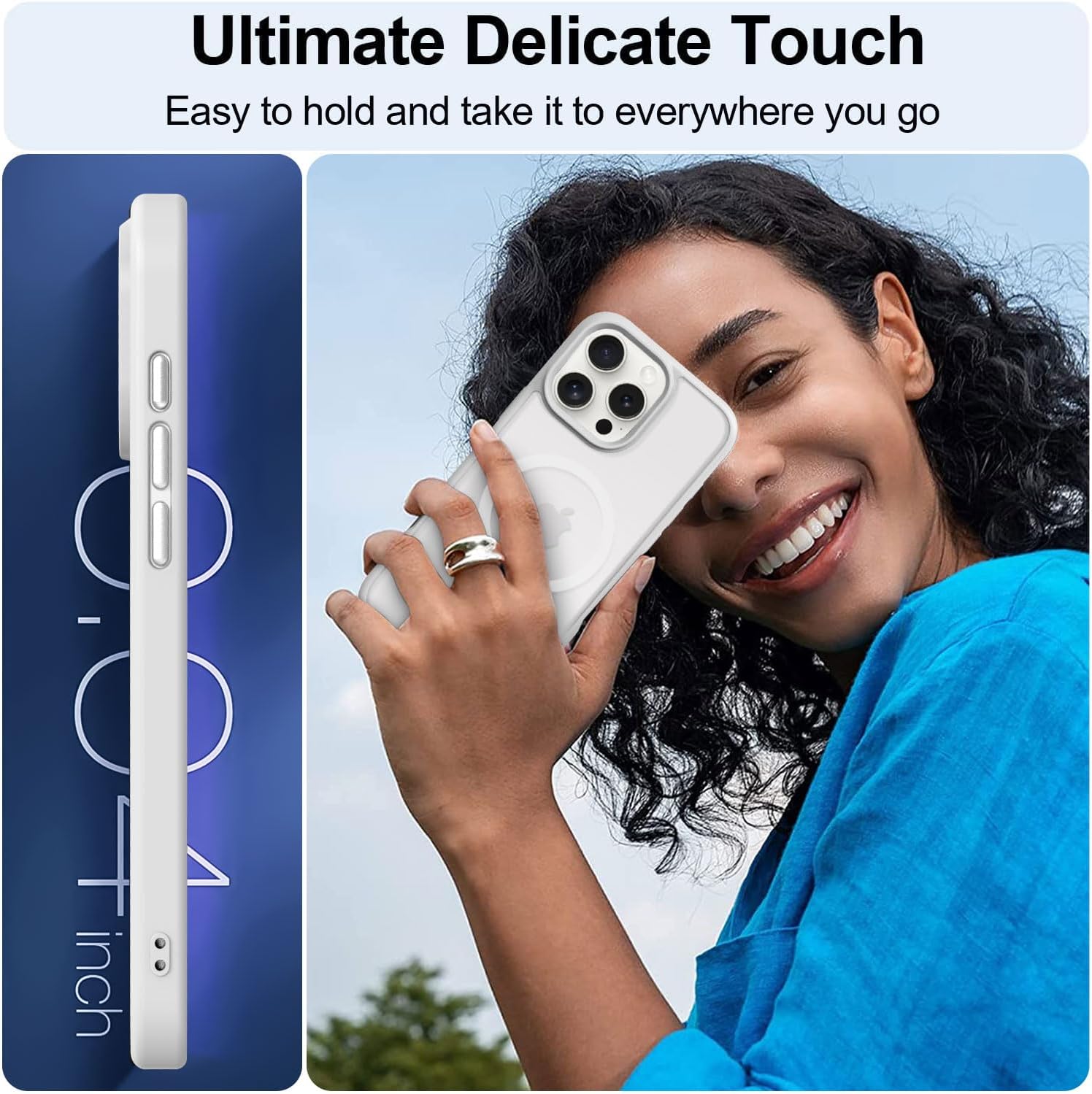 13 reviews for MOCCA Strong Magnetic for iPhone 16 Pro Phone Case, [Compatible with Magsafe][16FT Mil-Grade Drop Protection] Slim Thin Translucent Matte Protective Cover Case for iPhone 16 Pro Case, Frosted White
