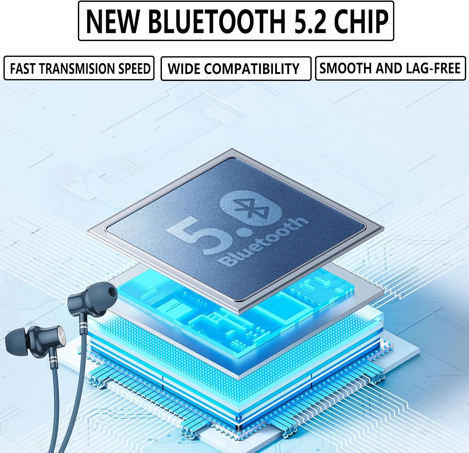 Adopt the new Bluetooth 5.2 technology: 5.2 chip bluetooth neck headphones It brings faster transmission speed and more stable connection, smooth transmission without lag, low power consumption, wide compatibility, and provides incredible layering and shock, surging bass, balanced midrange, and treble penetration. You can enjoy the layering and power of panoramic stereo sound for immersive sound reproduction.