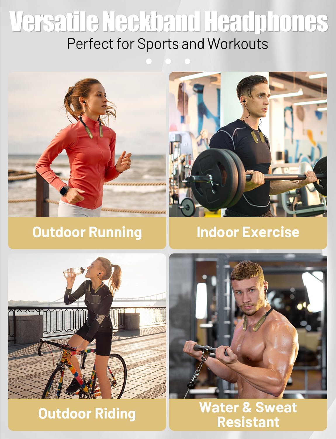 8 reviews for Neckband Bluetooth Headphones, 120H Long Playtime Wireless Stereo Neckband Earbuds with Microphone, Waterproof Around The Neck Headphones in Ear Headset for Sports/Workout/Office (Gold)