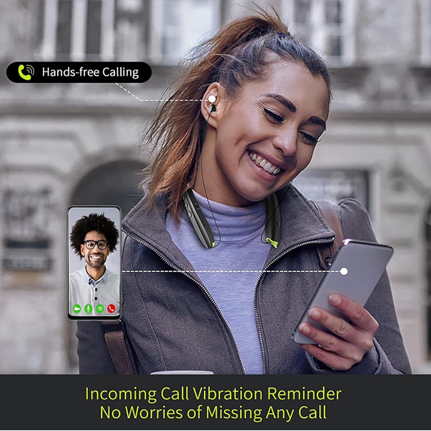 The neck bluetooth headphones have a built-in HD microphone that accurately picks up human voices, making clear calls feel like face-to-face communication. This neckband earbuds have a call reminder function, so you won’t miss every important call.