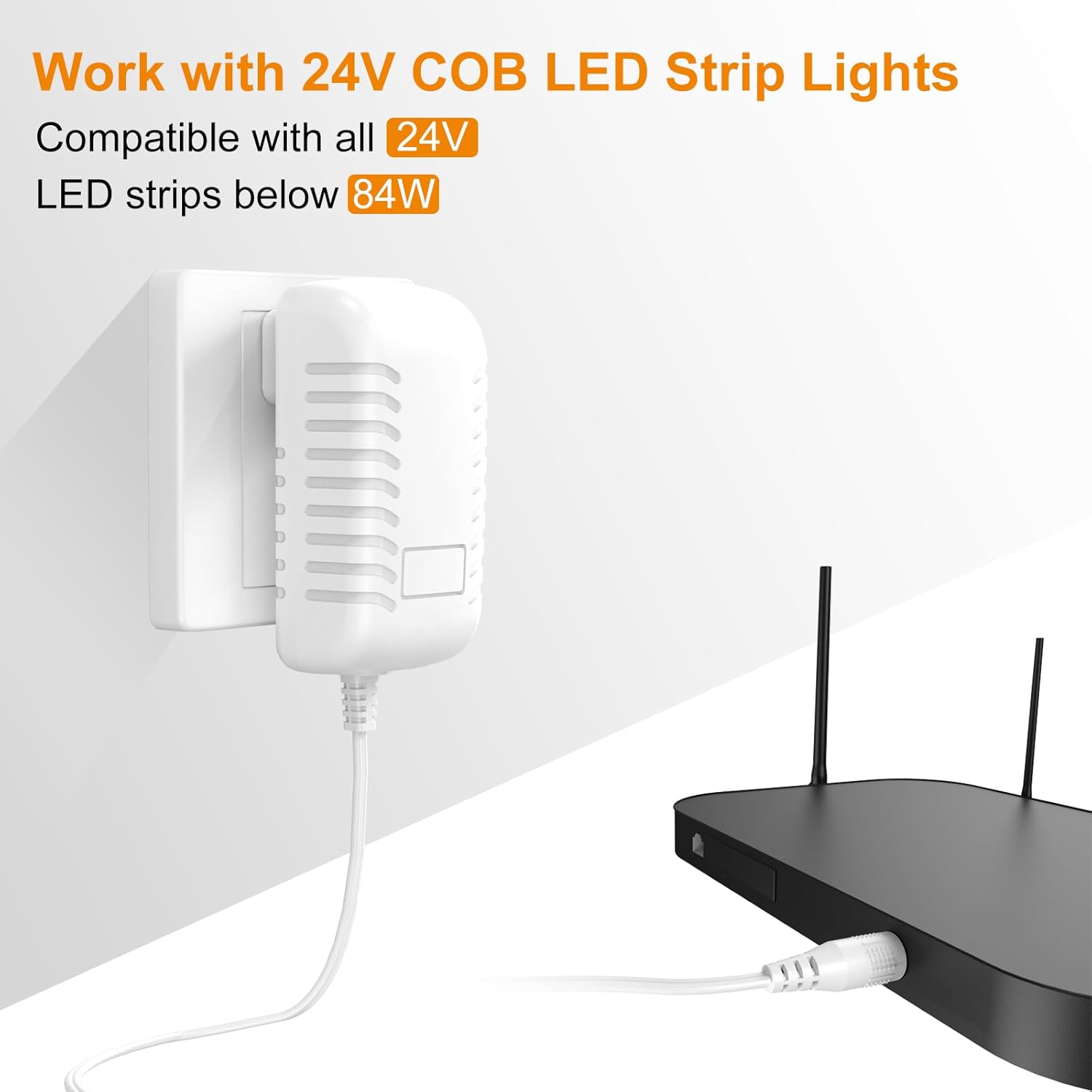 Make sure you match the volts, watts, and Amps correctly for the device you are powering. This 24v, 72w, 3a adapter worked perfectly with my cob led strip that requires 64watt power. Using an incorrect adapter is dangerous. Read manufacturer specifications or ask them if you are unsure.