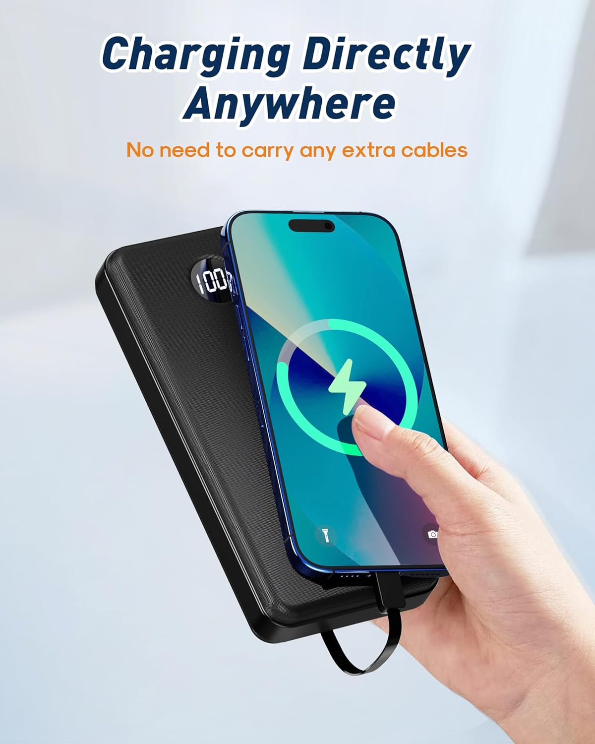 Portable Charger Power Bank – 37000mAh Portable Phone Battery with 4 Built-in Cables, 22.5W Fast Charging Battery Pack Bank Compatible with iPhone 16 15 14 13 Android Samsung Google Pixel etc(1 Pack)